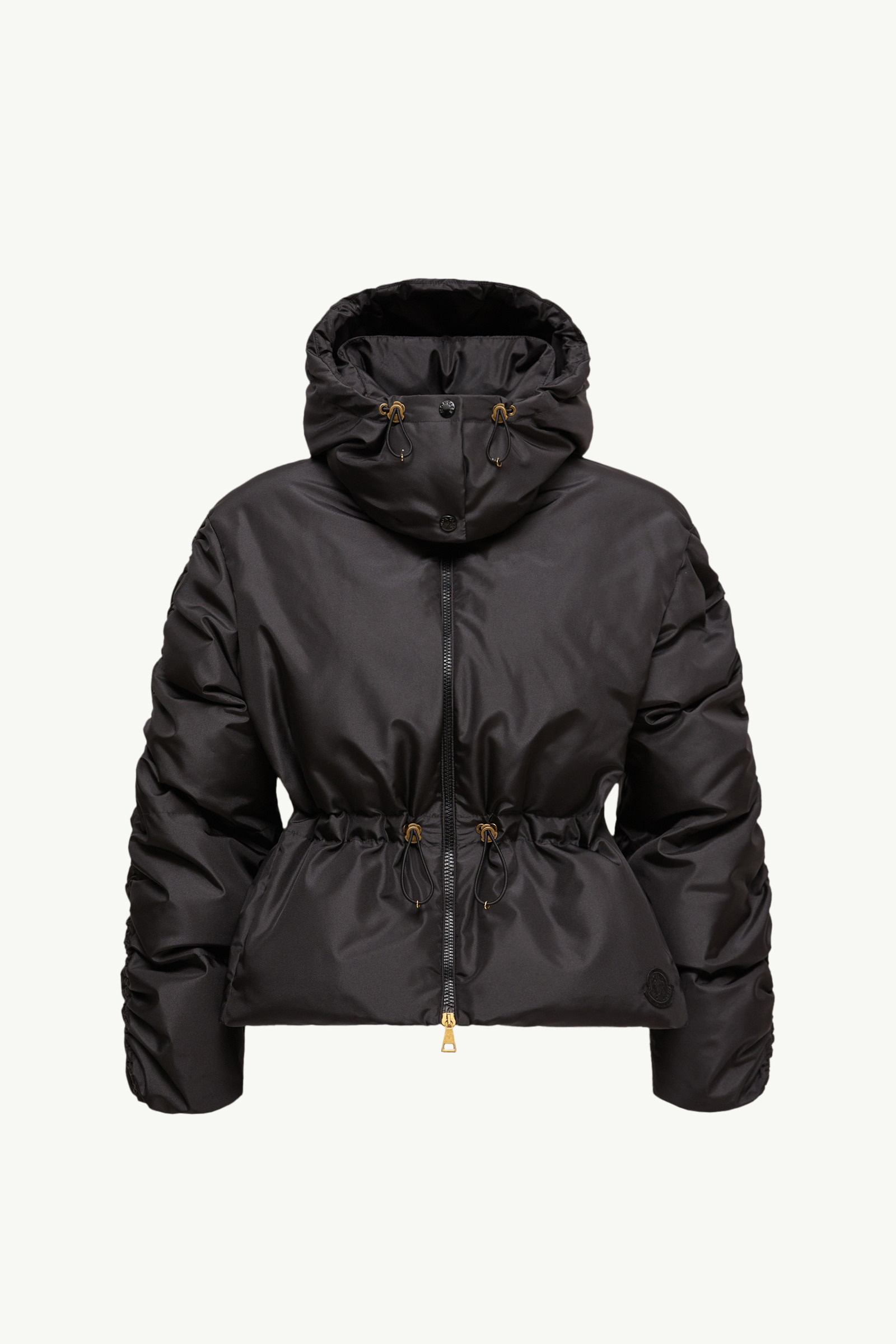 Delicate ruches along the sleeves and a relaxed fit infuse the Louviere short down jacket for women with directional softness. A new perspective on a feminine aesthetic, the Louviere down jacket pairs a glossy finish with an hourglass silhouette and ruched trim. The short puffer is further enhanced with a detachable hood, providing instant protection when its needed most. DETAILS - Crafted from canvas - Polyester lining - Down-filled - Detachable hood - Ruched trim along the sleeves - Zipper and snap button closure - Waistband with drawstring fastening - Elastic cuffs - Logo patch SIZE AND FIT - The model is wearing a size 0 and is 177 cm tall - Loose fit - Adjustable, elasticized waistline - Length (collar to hem): 60 cm COMPOSITION EXTERIOR: 100% Polyester; LINING: 100% Polyester; HOOD LINING: 100% Polyester; PADDING: 90% Down, 10% Feather Product code K20931A00220597VT999 Made in Romania