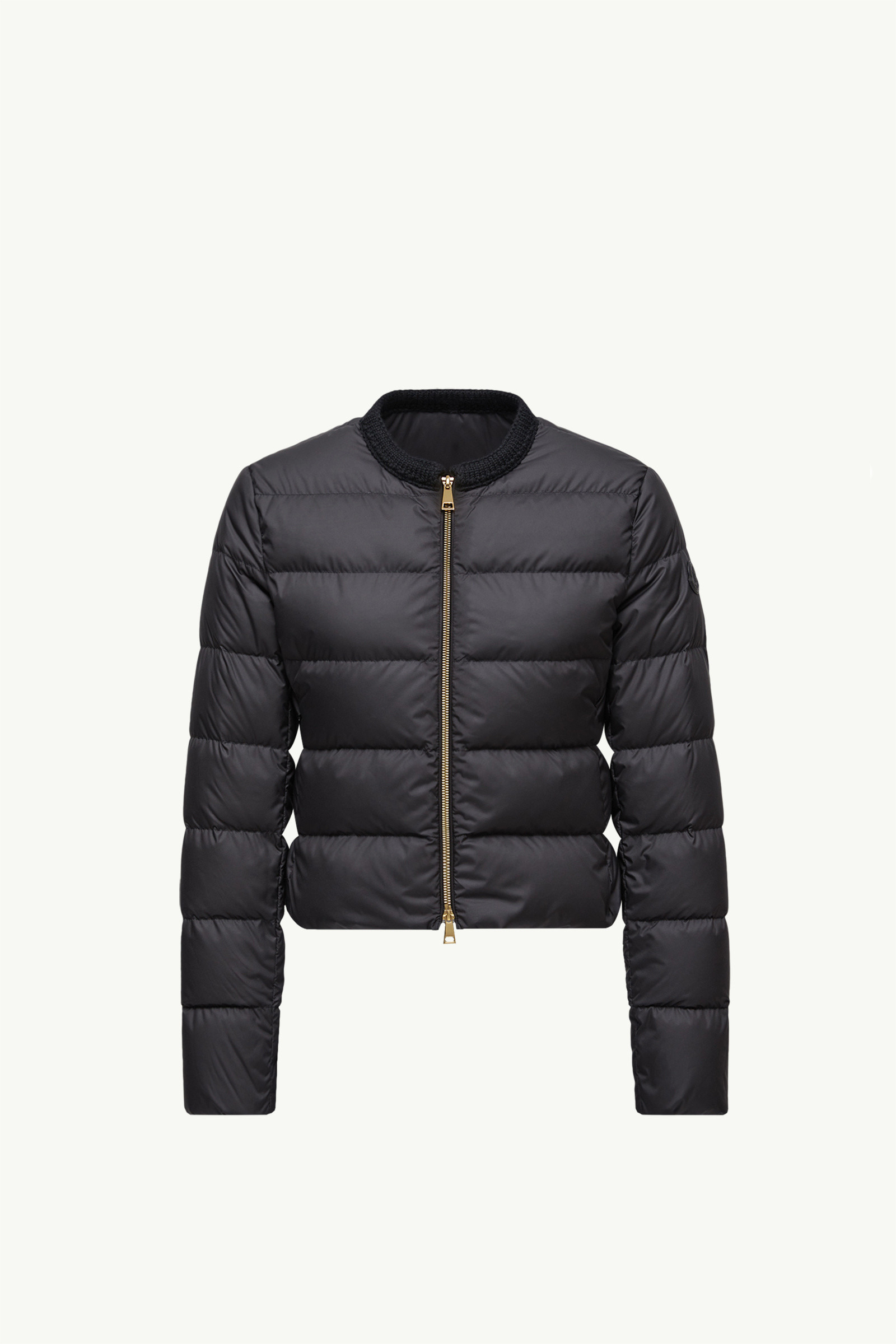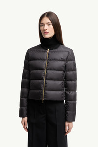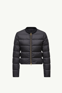 A sophisticated approach to a classic design, the Mauvezin short down jacket for women is characterized by plush textures. Effortlessly feminine, the Mauvezin down jacket pairs plush fabrics with a collarless silhouette. The puffer is crafted from polyester, brushed for an excelptionally soft feel. A wool trim at the neckline completes the design, adding a precious finishing touch. DETAILS - Crafted from polyester - Recycled polyester lining - Down-filled - Knit wool neckline - Zipper closure - Zipped pockets - Leather logo patch SIZE AND FIT - Slim fit - Length (collar to hem): 51 cm COMPOSITION EXTERIOR: 100% Polyester; Collar rib: 100% Virgin wool; LINING: 100% Polyester; PADDING: 90% Down, 10% Feather;LEATHER TAG: CALF Product code K20931A0006154AQE999 Made in Romania