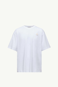 A tribute to the artist's creative agency, this Moncler x A$AP Rocky cotton t-shirt features a printed logo. Crafted from soft cotton jersey, this Moncler Genius t-shirt references A$AP Rocky's creative agency with a logo print. Emblematic of the co-creation's bold proportions, the crew neck comes in an oversized fit. DETAILS - Crafted from cotton jersey - Crew neck - Short sleeves - Logo print - Logo patch SIZE AND FIT - The model is wearing a size L and is 190 cm tall - Oversized fit COMPOSITION BASE FABRIC: 100% Cotton; Ribs: 100% Cotton Product code K24048C0000289AYW001 Made in Turkey