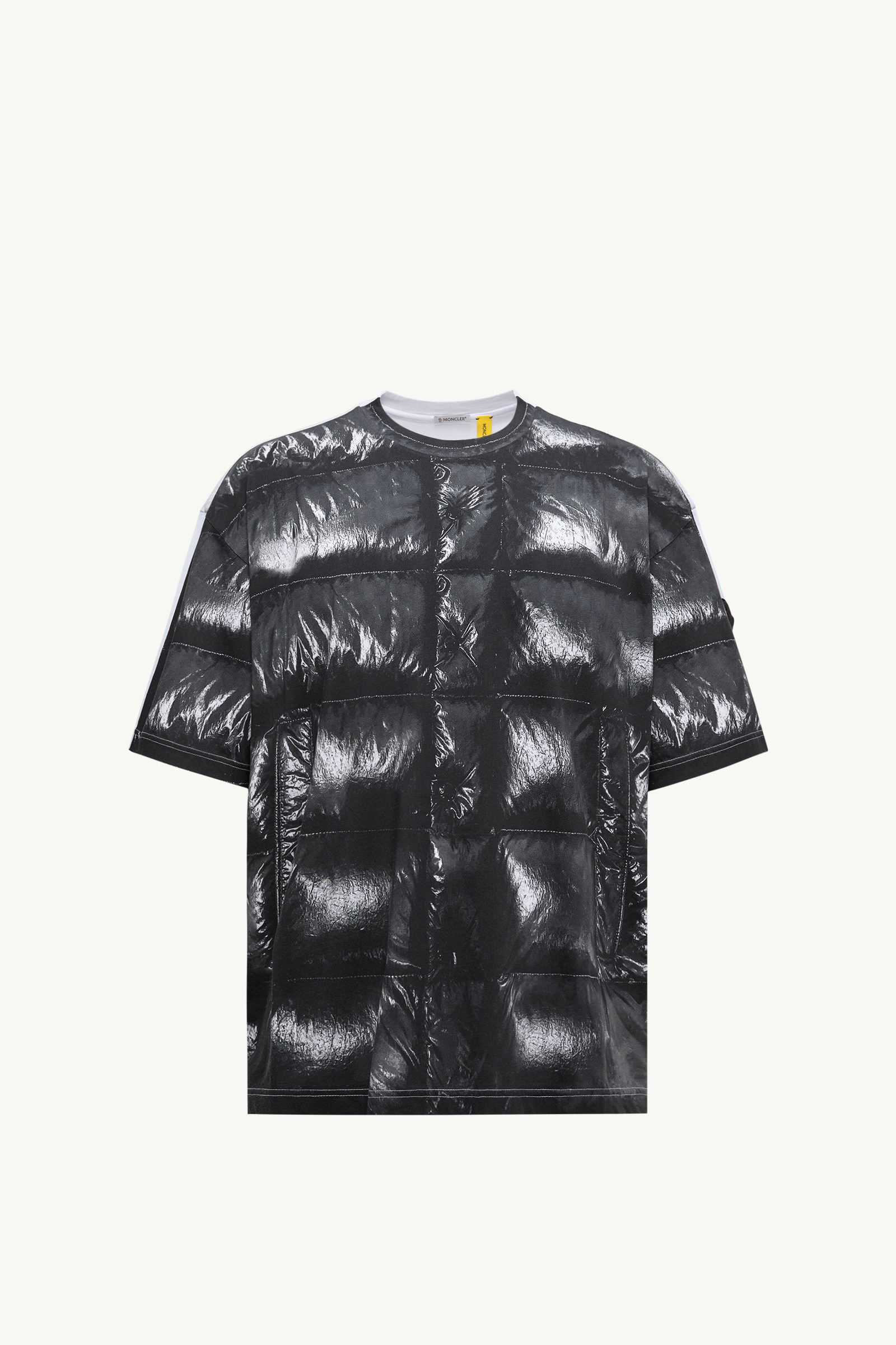 This Moncler x A$AP Rocky cotton t-shirt features a quilting-inspired graphic print. Inspired by the signature quilting that defines Moncler’s down jackets, this Moncler Genius t-shirt is characterized by a digital print. Ensuring comfort throughout the day, the Moncler x A$AP Rocky t-shirt is crafted from cotton. DETAILS - Crafted from cotton jersey - Crew neck - Short sleeves - Printed pattern - Logo patch SIZE AND FIT - The model is wearing a size L and is 190 cm tall - Oversized fit COMPOSITION BASE FABRIC: 100% Cotton; Ribs: 100% Cotton Product code K24048C0000189AYW999 Made in Turkey