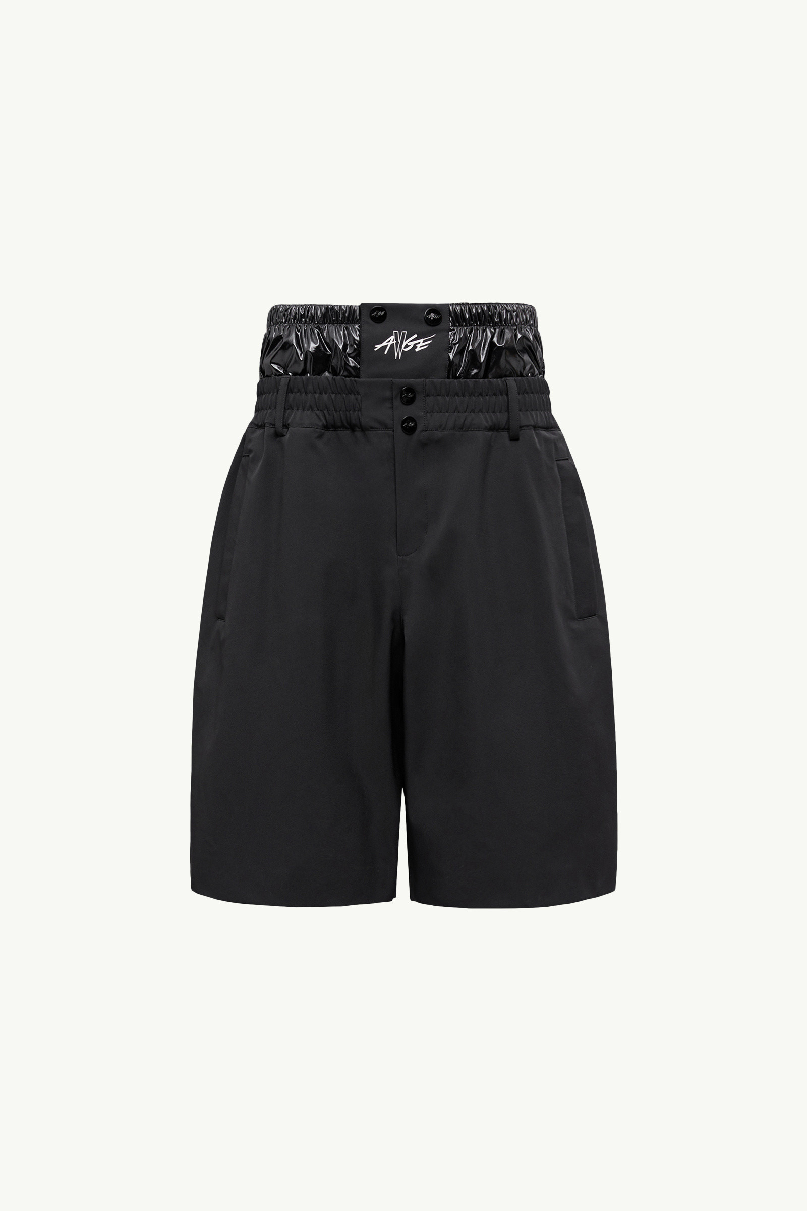 Featuring an oversized silhouette, these Bermuda shorts are emblematic of the Moncler x A$AP Rocky collection. Mixing brand codes with the artist's aesthetic, these Moncler x A$AP Rocky shorts boast a gaiter waistband, creating a layered effect. Supporting movement, the Moncler Genius design is crafted from 4-way stretch nylon with a breathable construction. DETAILS - Crafted from 3L 4-way stretch nylon - Waistband with gaiter - Snap button and zipper closure - Pockets with snap button closure - Logo print - Logo patch SIZE AND FIT - The model is wearing a size 48 and is 188 cm tall COMPOSITION BASE FABRIC: 87% Polyamide / Nylon, 13% Elastane / Spandex; DETAILS PADDING: 100% Polyester; 1 MATERIAL: 100% Polyamide / Nylon Product code K24042B00001M7556999 Made in Romania