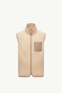 A cocooning design, this vest from the men's collection combines plush teddy fleece with accents in nubuck leather. Soft to the touch, teddy fleece adds a sensory element to this vest. The zip-up style is accentuated by a knit trim and nubuck pocket, adding a sophisticated note to the design. DETAILS - Crafted from teddy fleece - Nubuck chest pocket - Zipper closure - Side pockets - Rib knit trim SIZE AND FIT - The model is wearing a size L and is 188 cm tall - Regular fit COMPOSITION BASE FABRIC: 100% Polyester; FRONT LINING: 100% Cotton; COLLAR: 100% Polyester; COLLAR LINING: 100% Polyester;1 LEATHER MATERIAL: COW Product code K20918G0007489B6F200 Made in Moldova
