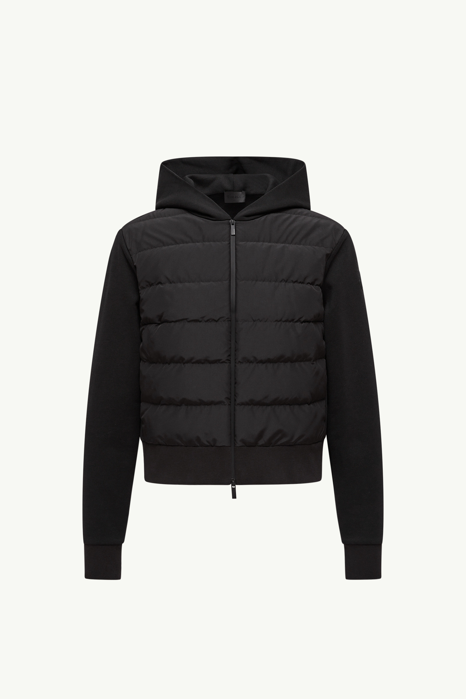 Crafted from cotton and nylon, this padded zip-up hoodie from the women's collection is a versatile style that transcends seasons. Practical and minimalistic, this zip-up hoodie is designed for modern women who place equal value on functionality and aesthetics. Crafted from cotton, the design is enhanced by a warm down-filled front. A nylon hood completes the style, offering cover from the elements. DETAILS - Crafted from cotton fleece - Down-filled nylon front - Hood - Zipper closure - Zipped pockets - Elastic cuffs and hem - Silicone logo patch SIZE AND FIT - The model is wearing a size XS and is 178 cm tall - Loose fit COMPOSITION BASE FABRIC: 100% Cotton; OUTER FRONT: 100% Polyester; FRONT LINING: 100% Polyester; HOOD: 100% Cotton; HOOD LINING: 100% Cotton; Ribs: 95% Cotton, 5% Elastane / Spandex; PADDING: 90% Down, 10% Feather Product code K20938G0001289B02999 Made in Moldova