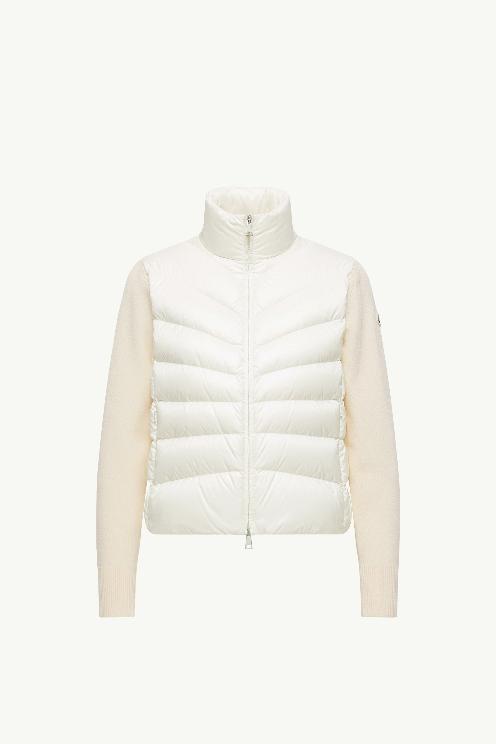 Easily doubling as outerwear when the weather permits, this wool cardigan for women is enhanced with a down-filled front and back. A classic Moncler design, this padded cardigan can easily be worn alone or layered under coats and jackets. Crafted from the softest wool, the lightweight knit is enhanced with a down-filled front and back. DETAILS - Crafted from ultra-fine Merino wool - Longue saison lining - Down-filled longue saison front and back - Fully-fashioned ribbed knit sleeves and back - Gauge 14 - Stand collar - Zipper closure - Side pockets with zipper closure SIZE AND FIT - Loose fit COMPOSITION BASE FABRIC: 100% Polyamide / Nylon; FRONT LINING: 100% Polyamide / Nylon; BACK LINING: 100% Polyamide / Nylon; PADDING: 90% Down, 10% Feather; SLEEVES: 100% Virgin wool Product code K20939B00024M1131030 Made in Moldova
