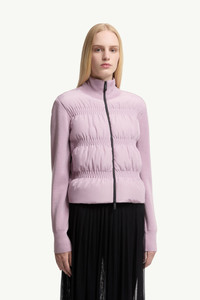 Reimagining a signature design, this wool zip-up cardigan is characterized by gathered quilting. Designed to be worn throughout the year, this wool cardigan features a warm down-filled front. The lightweight knit is further enhanced with a gather-quilted pattern, adding a feminine and contemporary feel to the design. DETAILS - Crafted from ultra-fine wool - Down-filled taffeta front with gathered effect - Half-brioche stitch - Gauge 12 - Zipper closure - Zipped pockets - Silicone logo patch SIZE AND FIT - The model is wearing a size XS and is 179 cm tall - Regular fit COMPOSITION OUTER FRONT: 100% Polyester; BASE FABRIC: 100% Virgin wool; FRONT LINING: 100% Polyester; PADDING: 90% Down, 10% Feather Product code K20939B00020M113154L Made in Romania