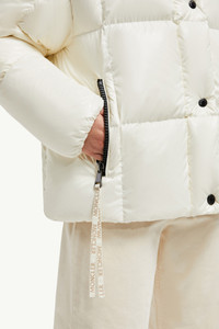 Classic and contemporary, the Parana down jacket for women is inspired by the Italian paninaro culture of the ’80s, reinterpreted for today’s fashion. This Parana down jacket is characterized by its precious shiny nylon laque texture. The short puffer's grid quilting provides warmth without the bulk, while the detachable hood adds versatility for changing weather. DETAILS - Crafted from nylon laque - Nylon laque lining - Down-filled - Detachable and adjustable hood - Zipper and snap button closure - Zipped pockets - Elastic cuffs - Logo SIZE AND FIT - Loose fit - Length (collar to hem): 65 cm COMPOSITION EXTERIOR: 100% Polyamide / Nylon; LINING: 100% Polyamide / Nylon; HOOD LINING: 100% Polyamide / Nylon; PADDING: 90% Down, 10% Feather Product code K20931A001036895003B Made in Moldova or Romania