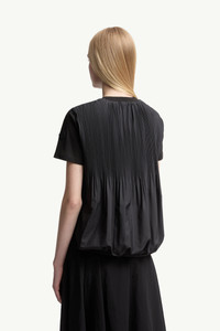 Taking textured designs to the next level, this cotton jersey t-shirt for women is characterized by a pleated back. Feminine with a twist, this short-sleeved top plays with texture and movement. The crew neck t-shirt is crafted from soft cotton jersey with a pleated back. DETAILS - Crafted from cotton jersey - Polyester pleated back - Crew neck - Short sleeves - Silicone logo patch SIZE AND FIT - The model is wearing a size XS and is 179 cm tall - Regular fit COMPOSITION BASE FABRIC: 100% Cotton; OUTER BACK: 100% Polyester; BACK LINING: 100% Cotton; Ribs: 100% Cotton Product code K20938C0001689A17999 Made in Albania
