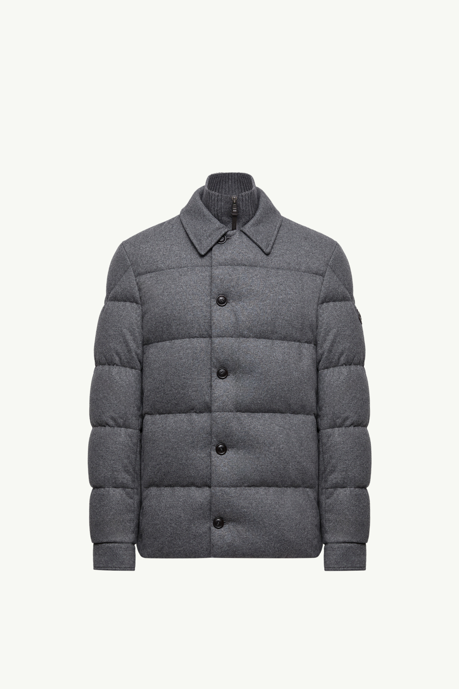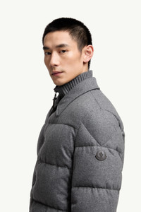 Pairing sleek lines with technical materials, the Pres short down jacket is an essential for the modern gentleman. Exemplary of Moncler's technical know-how, the Pres short down jacket is crafted from a cashmere blend. The innovative blend pairs the softness of the knit fabric with the resiliance of nylon. Creating a sleek shape without renouncing warmth, the puffer is completed by a detachable hood. DETAILS - Crafted from smat cashmere jersey - Airsoft lining - Down-filled - Knit collar - Zipper and button closure - Zipped pockets - Chest pocket with button closure - Inner pockets with zipper and snap button closure - Leather logo patch SIZE AND FIT - Regular fit - Straight cut - Length (collar to hem): 74 cm COMPOSITION EXTERIOR: 53% Polyamide / Nylon, 47% Cashmere; Collar rib: 100% Virgin wool; LINING: 100% Polyester; PADDING: 90% Down, 10% Feather; 1 MATERIAL: 100% Virgin wool;LEATHER TAG: COW; LEATHER OUTER APPLICATION: COW Product code K20911G0003589A6J940 Made in Moldova