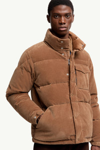 Playing with dimensions, the Serrant short down jacket for men revisits corduroy's sophisticated ribbed finish with a maxi effect. Creating an optical effect, the Agen down vest magnifies corduroy fabric's ribbed texture. The puffer is completed by classic boudin quilting and a high stand collar, ensuring warmth in even the coldest months. Adding a touch of brand DNA, the design nods to the Moncler Maya with a pocket on the sleeve. DETAILS - Crafted from corduroy - Polyester lining - Down-filled - Zipper and snap button closure - Zipped pockets - Chest pocket with zipper and snap button closure - Adjustable cuffs - Hem with elastic drawstring fastening SIZE AND FIT - The model is wearing a size 3 and is 189 cm tall - Regular fit - Fitted shoulders and chest - Boxy waistline COMPOSITION EXTERIOR: 100% Cotton; LINING: 100% Polyester; PADDING: 90% Down, 10% Feather Product code K20911A00197598XG26I Made in Romania