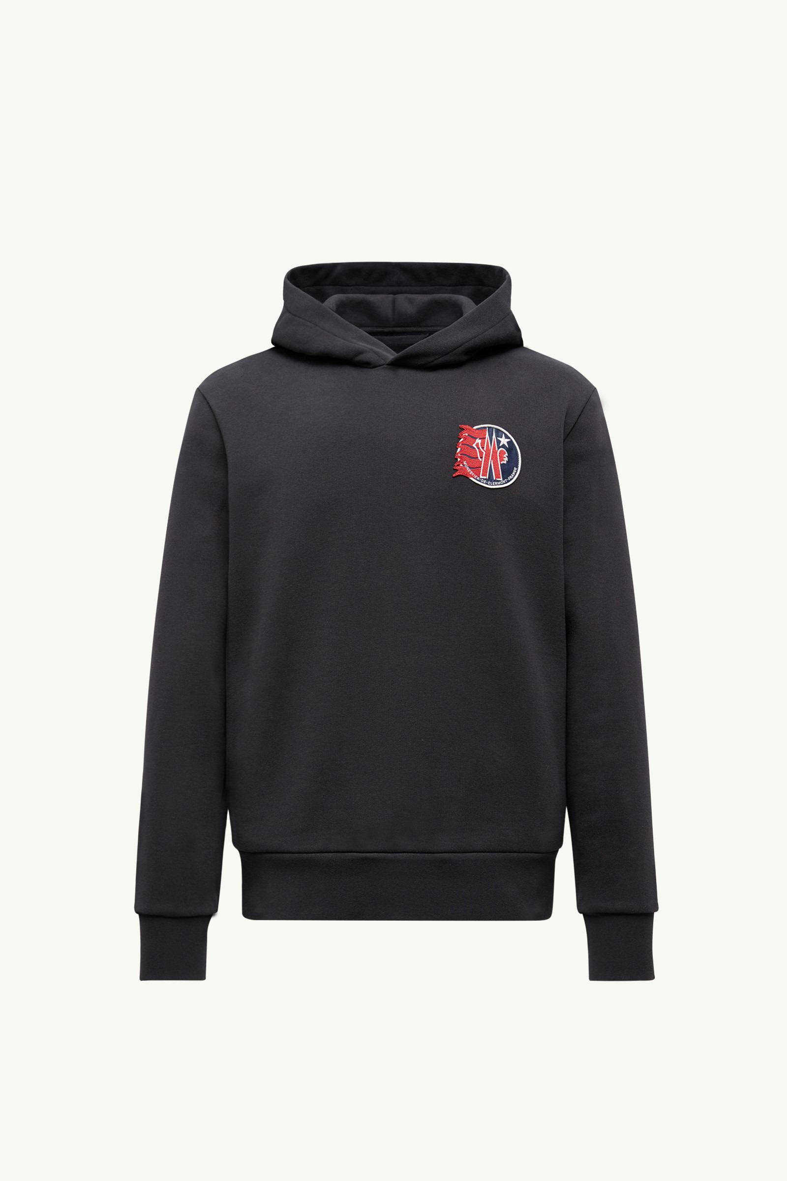 Rooted in brand history, this cotton hoodie from the men's collection is characterized by a new iteration of the logo. A go-to piece in a casual wardrobe, this sweatshirt is crafted from soft cotton fleece. Nodding to Moncler's origins, the hoodie is embellished with a logo patch. DETAILS - Crafted from cotton fleece - Hood - Rib knit trim - Logo patch SIZE AND FIT - The model is wearing a size L and is 190 cm tall - Loose fit COMPOSITION BASE FABRIC: 100% Cotton; HOOD: 100% Cotton; HOOD LINING: 100% Cotton; Ribs: 95% Cotton, 5% Elastane / Spandex Product code K20918G00057899V4998 Made in Turkey
