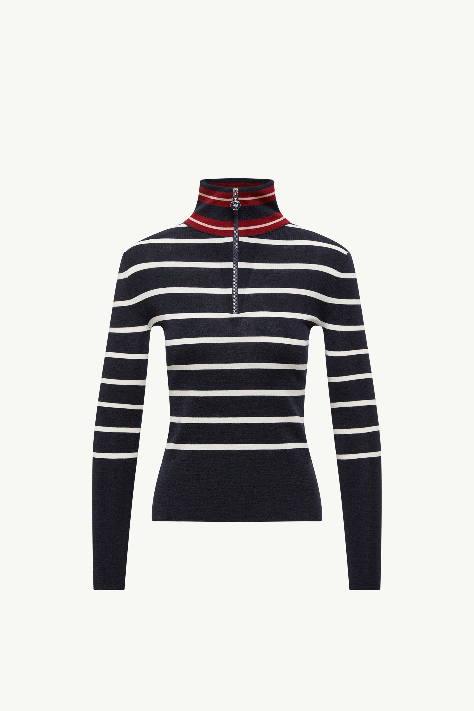 Crafted from the softest wool, this turtleneck sweater for women is characterized by a timeless striped pattern. A lightweight knit, this turtleneck sweater is crafted from luxurious Merino wool. Easily dressed up or down, the piece features graphic stripes. A logo trim adds a finishing touch. DETAILS - Crafted from Merino wool - Fully fashioned knit - Gauge 18 - Turtleneck with zipper closure - Logo jacquard trim SIZE AND FIT - The model is wearing a size XS and is 176 cm tall COMPOSITION BASE FABRIC: 100% Virgin wool Product code K20939F00001M1180P70 Made in Romania