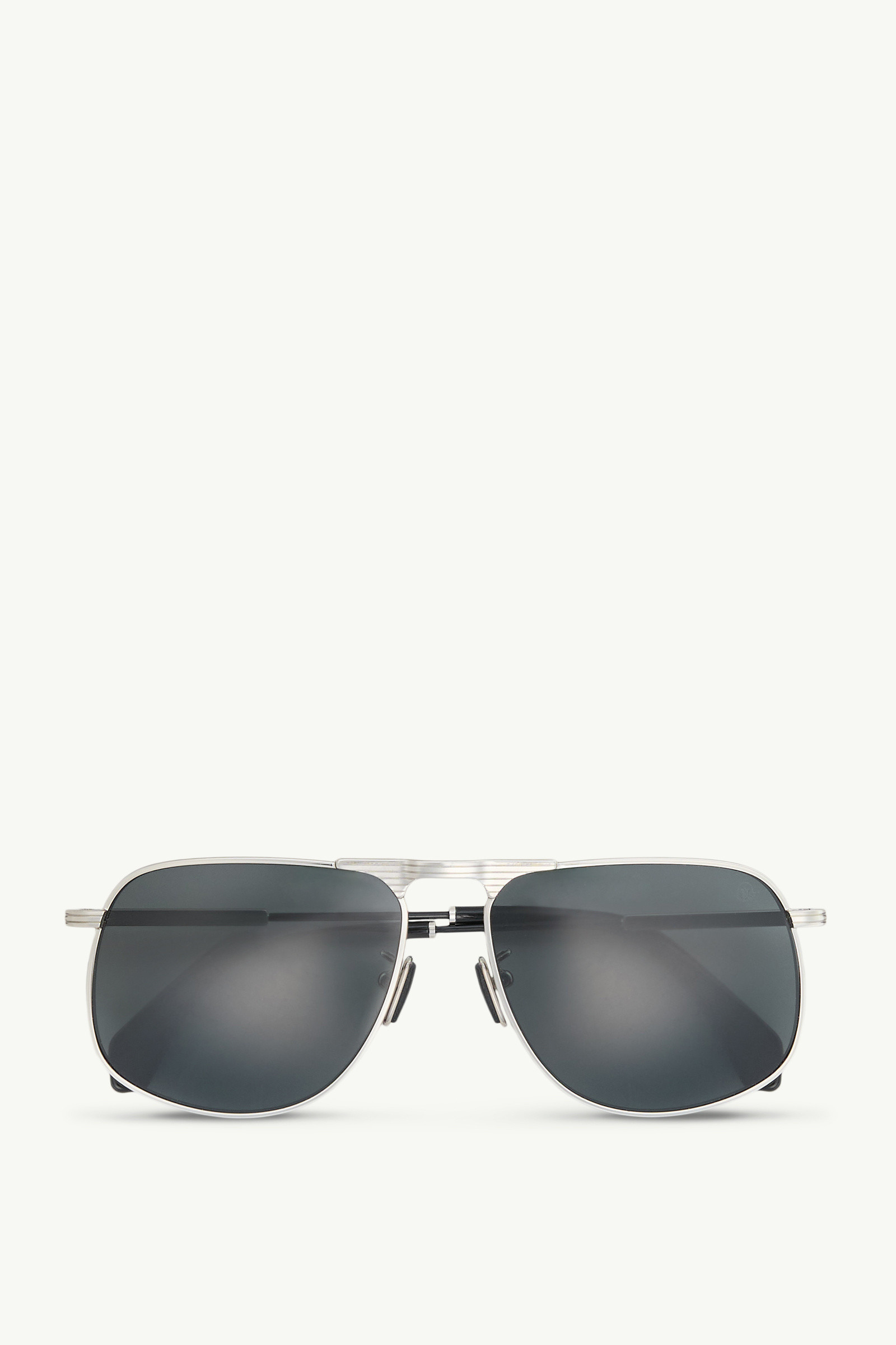 A classic design for men and women, the Vitessa sunglasses revisit the pilot shape with light materials and subtle logo accents. Defined by their sleek lines and minimalist aesthetic, the Vitessa sunglasses feature a classic aviator-inspired shape. The silver shades are built for comfort, featuring a lightweight construction in thin metal and adjustable nose pads. Subtly alluding to brand DNA, logo details complete the eyewear. The design can be adapted for prescription lenses. DETAILS - Shape: Pilot - Frame material: Metal - Frame color: Silver - Lens color: Grey - Logo details - Temple length: 145 mm - Lens size: 58 mm - Bridge: 15 mm - Can be adapted for prescription lenses - The sunglasses come in a branded pouch with a lens cleaning cloth COMPOSITION Front material: Metal; Temples Material: Metal Product code 5690LME4014X1023XL87 Made in Italy