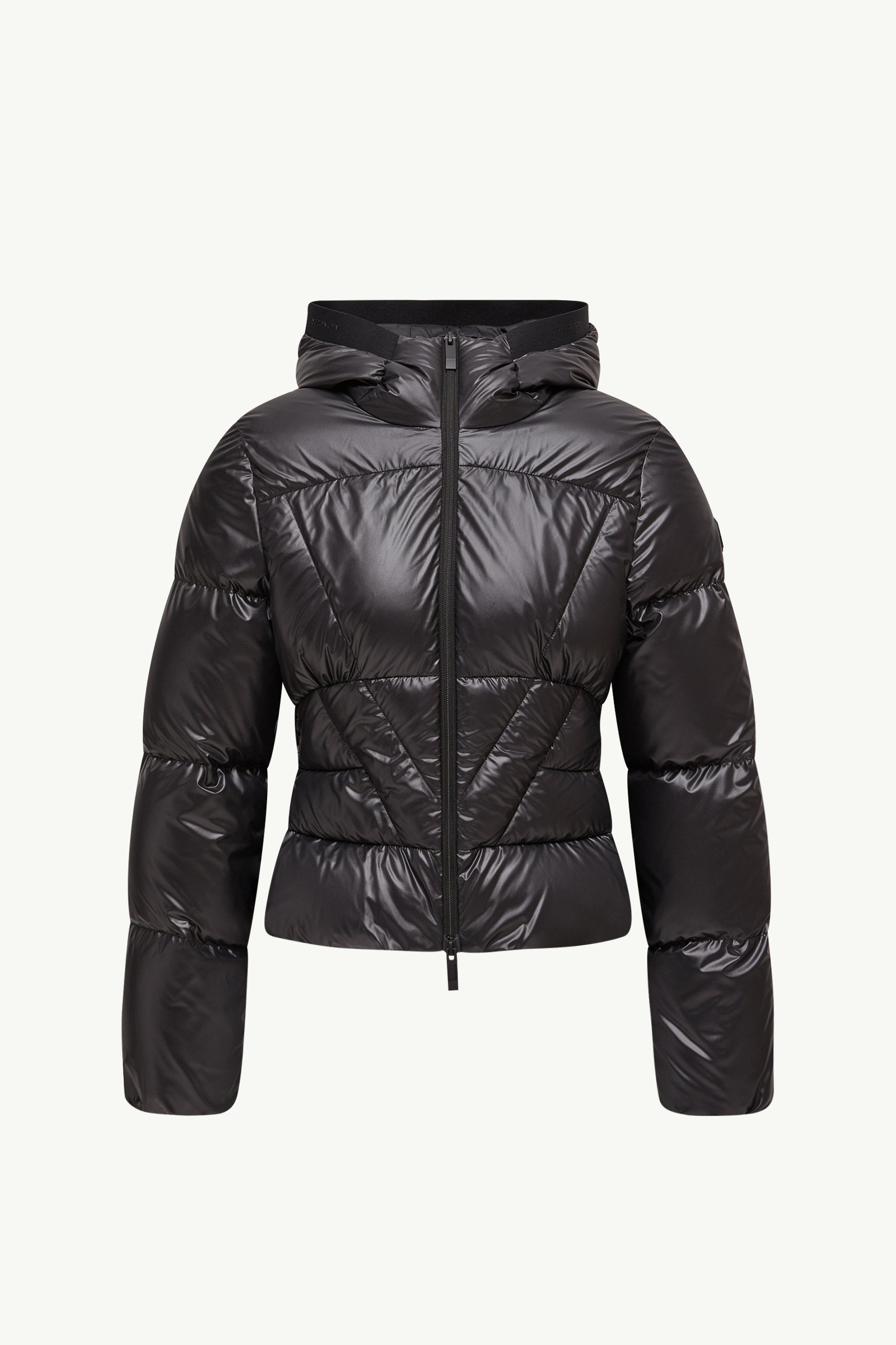 A contemporary design for women, the Wineck short down jacket boasts a bold, unexpected quilted pattern. Echoing the sculptural lines of corsetry, the Wineck down jacket features a feminine silhouette defined by contoured quilting. Crafted from polyester, the short puffer delivers optimal warmth without the bulk. A practical hood completes the style, offering additional protection for when the weather shifts. DETAILS - Crafted from polyester - Nylon lining - Down-filled - Hood with logo trim - Zipper closure - Zipped pockets - Elastic cuffs - Silicone logo patch SIZE AND FIT - The model is wearing a size 0 and is 179 cm tall - Slim fit - Length (collar to hem): 51 cm COMPOSITION EXTERIOR: 100% Polyester; LINING: 100% Polyamide / Nylon; HOOD LINING: 100% Polyamide / Nylon; PADDING: 90% Down, 10% Feather Product code K20931A00081597YX999 Made in Romania