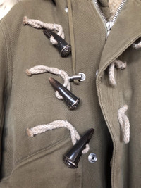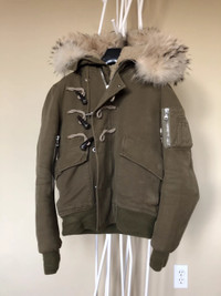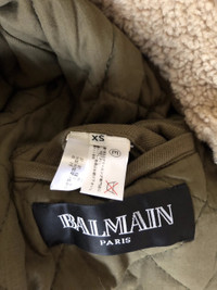 Best of the best Balmain lookbook piece from Fall 2011 in rare size XS. Luxurious raccoon fur hood, partial shearling lining, real horn buttons and Lampo heavy duty zip... The jacket is heavy weight and provides ultimate warmth in cold weather. Measurements: Shoulder: 43cm Armpit: 53cm Sleeve: 64cm Length: 60cm MSRP $6,500 Outside: 100% Cotton Made in France Condition 8.5/10, comes with tag and accessories