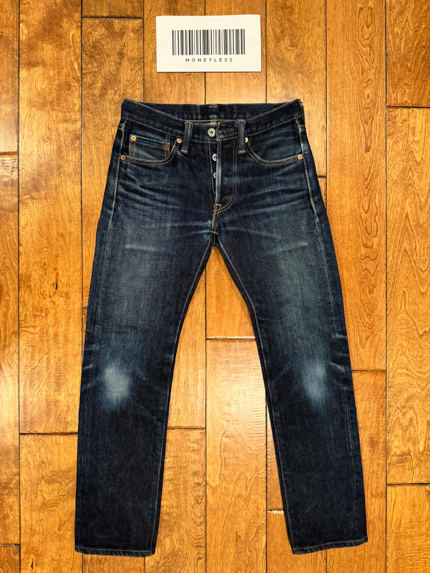 hemmed with chain-stitching by Iron Heart's vintage Union machine well worn a few years back and developed a beautiful fading