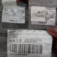 Tonello stripe blazer. Made in Italy. 100% linen. Measurements; bust 41cm X shoulder 37cm X length 65cm X waist 35cm Just creases (suggest ironing). In excellent condition. Details Online since:2023-08-26 Categories: women Category: Clothing Sub-category: Jackets Designer: Tonello Condition: 0 Material: Linen Colour: Grey Size: 40 IT Location: Hong Kong Reference: 36113338
