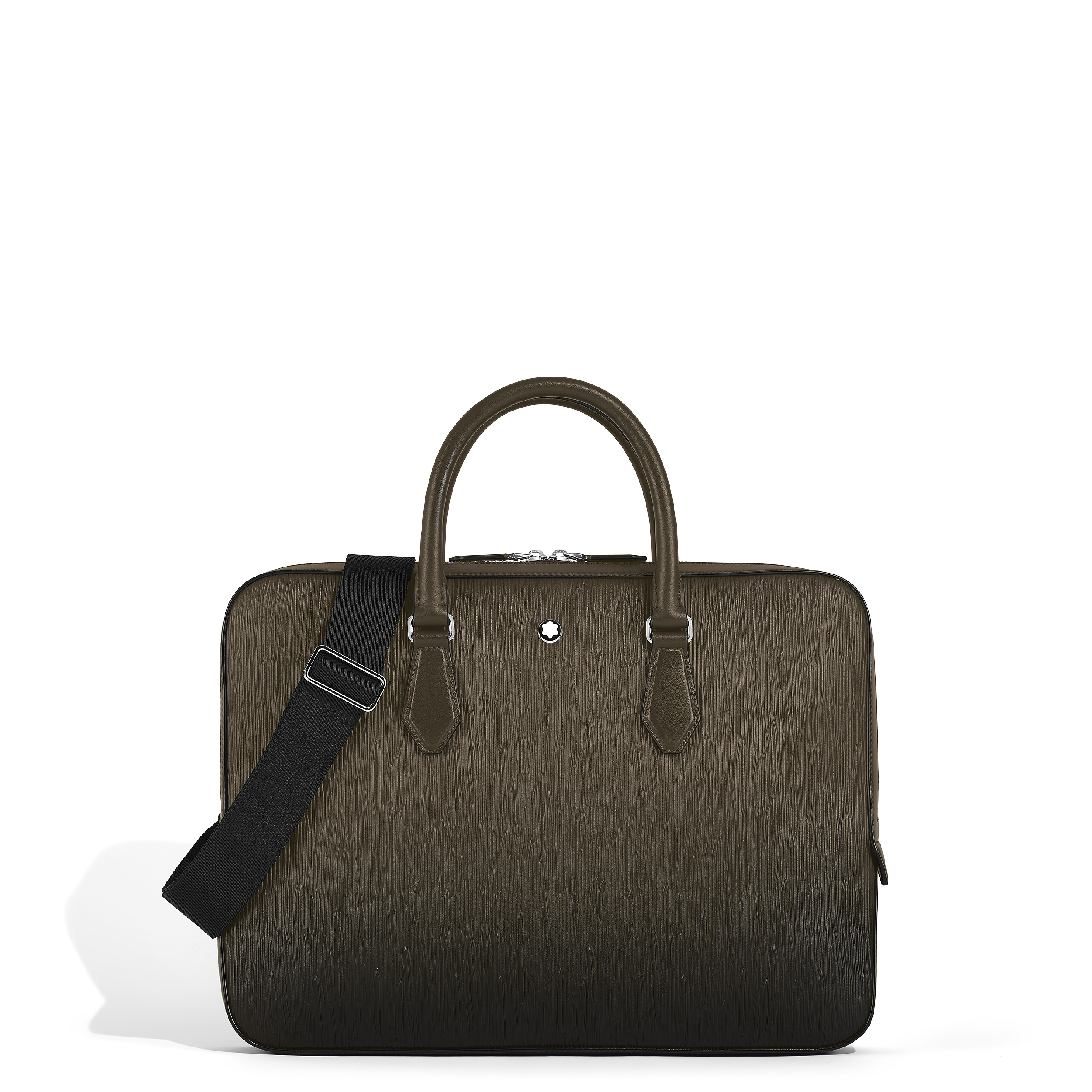 This elegant and spacious thin document case celebrates Montblanc’s writing heritage with its envelope-inspired design. Crafted from khaki Corteccia leather, the bark-inspired motif is achieved through hot stamping, while a hand-applied sfumato effect creates shading for a refined, natural finish. Perfect for business essentials, it accommodates electronic devices and A4 documents, while the interior features two open pockets and two loops for writing instruments, combining practicality with timeless style. Ident No. MB220269 Material Material Leather Leather Combination of lull-grain bovine leather plain and printed with bark tree motif Colour khaki Lining Fabric Closing System Metal zipper Dimensions Width 50 mm Length 400 mm Height 290 mm Physical Weight 1100 g