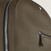 This luxurious khaki leather backpack is a sophisticated companion for daily commutes or short business trips. Crafted with a grain leather texture and soft shapes, it also features signature details, including nib-shaped zips, and refined stitching. Versatile carrying options include adjustable shoulder straps and a satellite system for easy attachment to larger luggage. The spacious main compartment is designed for seamless organisation, featuring a padded compartment for laptops up to 13 , an open pocket, and a pen loop to keep smaller essentials within reach. Ident No. MB220194 Material MATERIAL Calf-skin leather COLOR Khaki Dimensions DIMENSIONS 12.40 × 5.51 × 16.14 inches