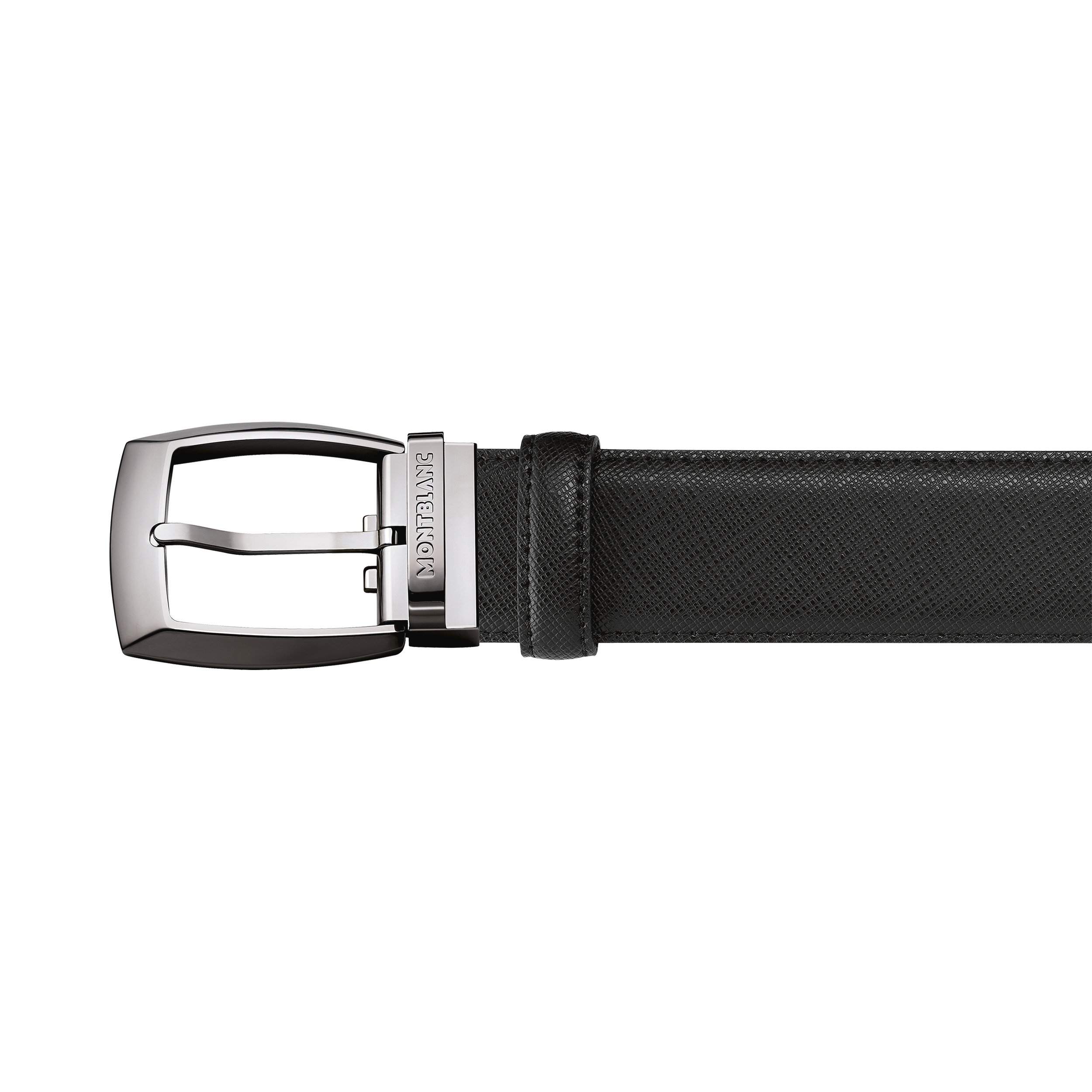 Shiny, convex-shaped, ruthenium finish pin buckle with engraved Montblanc brand name. Easy to adjust, 3.5 cm x 120 cm, with black saffiano printed leather strap. Designed for a casual look. Shiny, convex-shaped, ruthenium finish pin buckle with engraved Montblanc brand name. Easy to adjust, 3.5 cm x 120 cm, with black saffiano printed leather strap. Designed for a casual look. Ident No. MB112408 Material MATERIAL Calf-skin leather STRAP Black Saffiano printed leather strap BUCKLE MECHANISM Easy-to-open mechanism to adjust strap length SHAPE Convex COATING EMBLEM LOCATION Engraved Montblanc brand name COLOR Black Dimensions DIMENSIONS 47.24 × 1.38 × 0.14 inches FITTINGS / EMBLEM Emblems are manually centered, one by one, by our artisans. The emblem is centrally positioned, but the manual pressure operation with the machine may shift the emblem itself. This is a characteristic that does not compromise the aesthetic of the product and could not be accepted as complaint according to our policy.