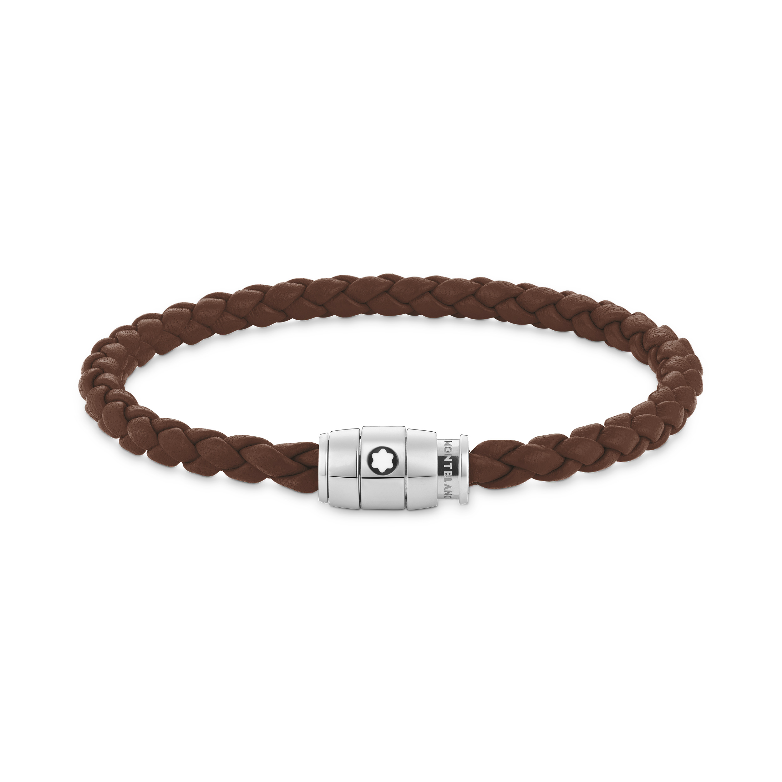 This piece of jewelry, crafted from soft leather, features a polished stainless steel clasp adorned with the Montblanc emblem. Ident No. MB136001 Material MATERIAL Steel PHYSICAL WEIGHT 12 g