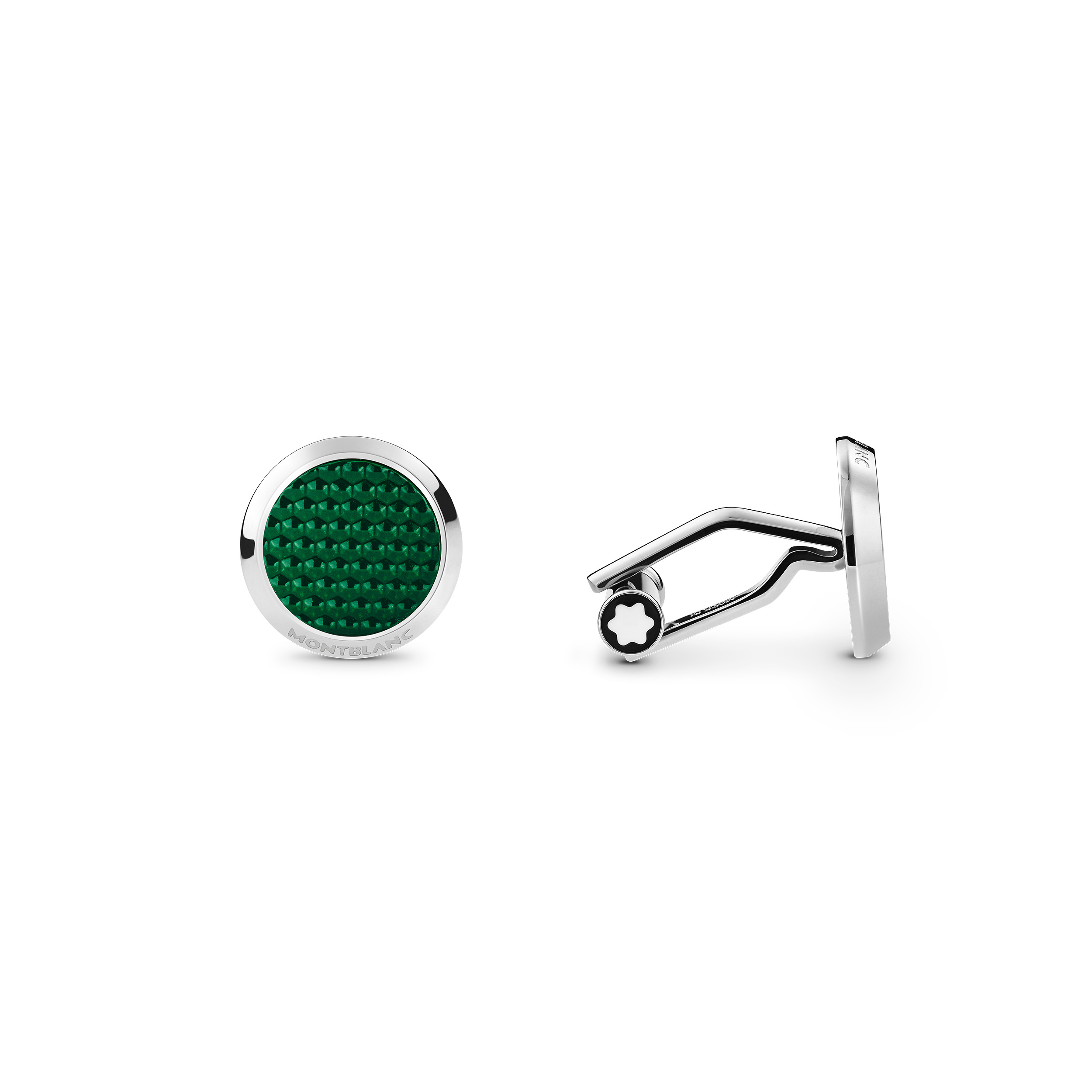 Cufflinks in stainless steel with hexagonal patterned green lacquer inlay. Ident No. MB129831 Material MATERIAL Steel PHYSICAL WEIGHT 16 g