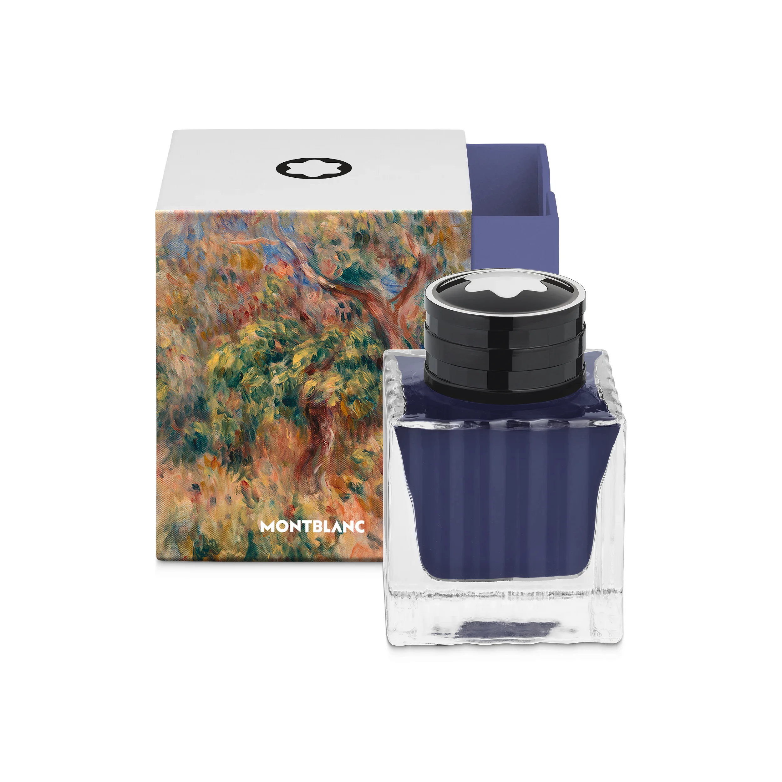 Montblanc Ink bottle, Masters of Art Homage to Pierre-Auguste Renoir, Bleu Outremer (Ultramarine Blue) - 50ml Montblanc Special Edition ink bottles come in square packaging that evokes the concepts and themes of each collection, making them valuable collectible items for Montblanc enthusiasts. Ident No. MB134411 Features Size 50 ml Colour Blue Dimensions Physical Weight 216 g