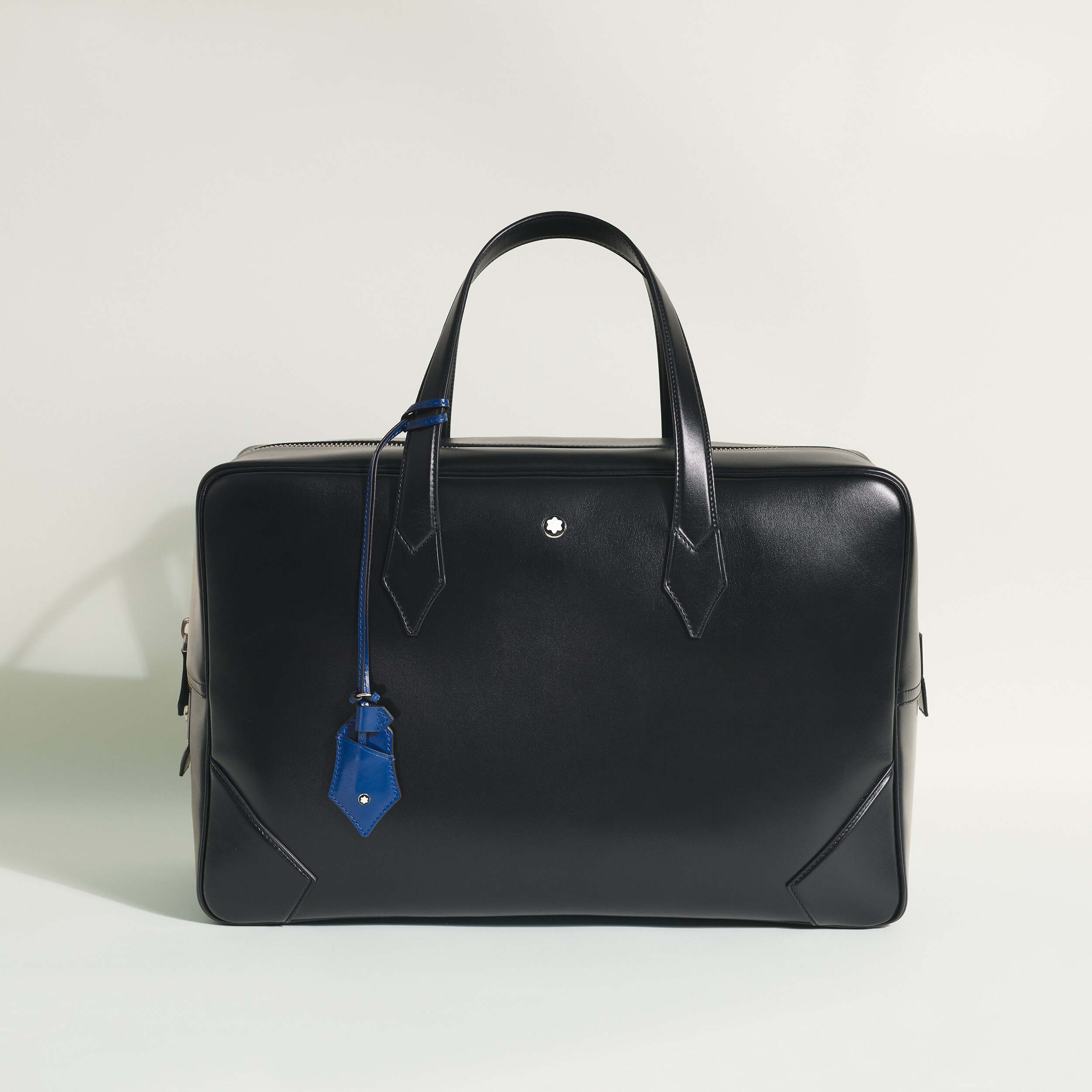 Inspired by the writing culture, the Meisterstuck Duffle bag is suitable for short trips and weekends. Crafted from a new deep shine black leather, all its details speak the language of the nib: stitching, zip pullers, handles recall the shape of the nib, the essence of Montblanc. A bigger version of the logo lights up the bag. With a large capacity, it has a secure closure with lock and key. Ident No. MB129666 Material MATERIAL Calf-skin leather LEATHER Full-grain calfskin, chrome-tanned, semi-aniline dyed through COLOR Black LINING Coated canvas CLOSURE Metal zipper with lock and key Dimensions DIMENSIONS 17.91 × 7.68 × 11.61 inches FITTINGS / EMBLEM Emblems are manually centered, one by one, by our artisans. The emblem is centrally positioned, but the manual pressure operation with the machine may shift the emblem itself. This is a characteristic that does not compromise the aesthetic of the product and could not be accepted as complaint according to our policy.