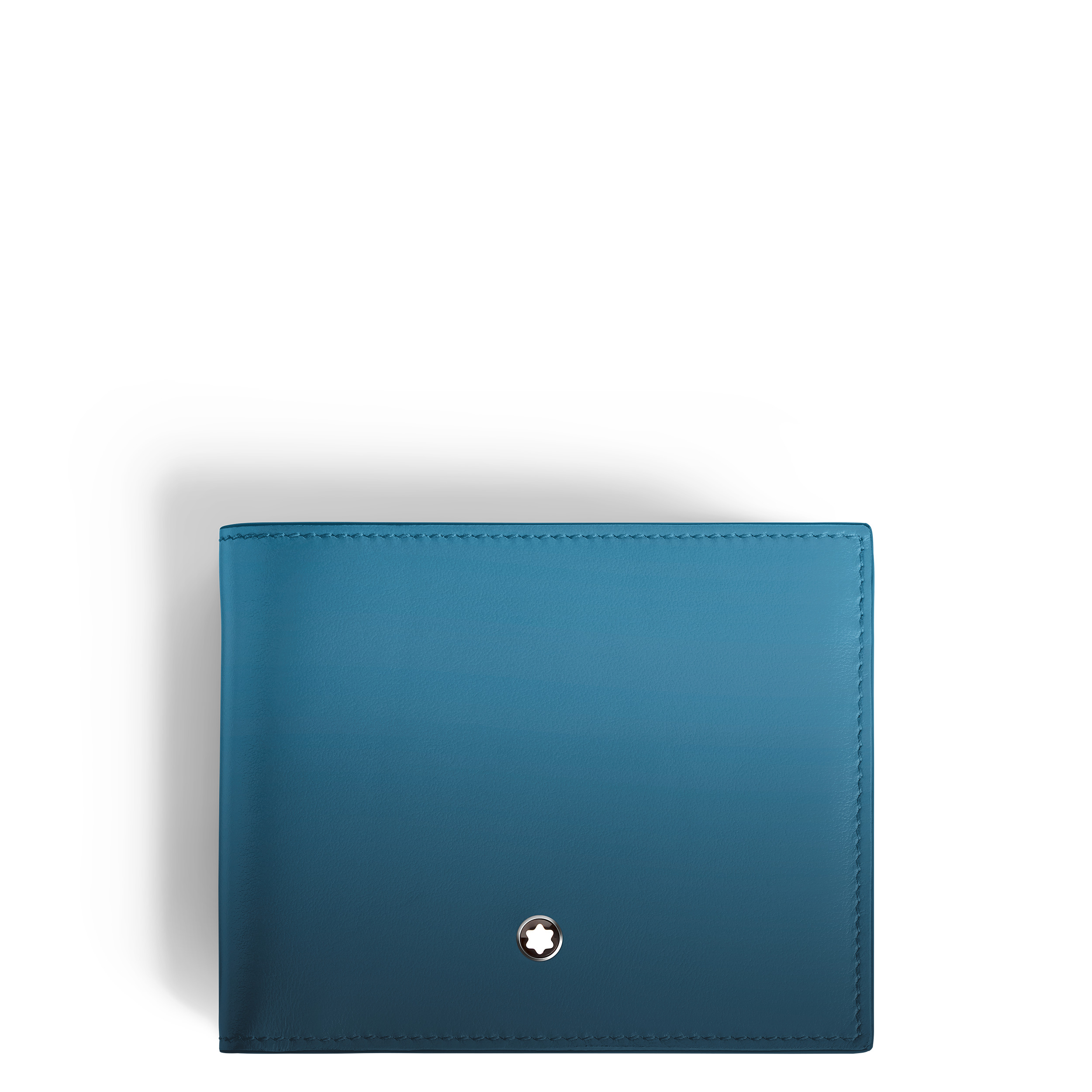 The Meisterstuck wallet is a luxurious everyday accessory crafted in a deep shine smoky blue leather enhanced with a manually appplied sfumato effect. Elegant and functional, it can fit up to six credit cards in the dedicated slots. Two compartments dedicated to bankontes and receipts and two additional pockets banknotes tie up the wallet with extra storage space. Ident No. MB199266 Material MATERIAL Calf-skin leather COLOR Sfumato Smoky Blue LINING Fabric Dimensions DIMENSIONS 4.33 × 0.39 × 3.35 inches FITTINGS / EMBLEM Emblems are manually centered, one by one, by our artisans. The emblem is centrally positioned, but the manual pressure operation with the machine may shift the emblem itself. This is a characteristic that does not compromise the aesthetic of the product and could not be accepted as complaint according to our policy.