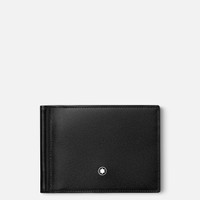 Wallet 6 cc with money clip, made of black European full-grain cowhide with unique Montblanc deep shine, jacquard lining with Montblanc brand name, Montblanc emblem with palladium finish ring, with 6 pockets for credit cards, money clip Ident No. MB5525 Material MATERIAL Bovine leather LEATHER European full-grain cowhide with unique Montblanc deep shine, chrome-tanned, dyed through COLOR Black LINING Jacquard lining with Montblanc brand name Dimensions DIMENSIONS 4.33 × 0.39 × 3.15 inches FITTINGS / EMBLEM Emblems are manually centered, one by one, by our artisans. The emblem is centrally positioned, but the manual pressure operation with the machine may shift the emblem itself. This is a characteristic that does not compromise the aesthetic of the product and could not be accepted as complaint according to our policy.