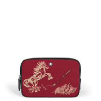 Crafted in red gabardine, this charming and compact bag features an exclusive embroidered that is elegantly paired with leather details in a contrasting black. Paying homage to the Year of the Horse, the embroidery evokes the fluidity of a sketched drawing, linking the spirit of the season with Montblanc's rich heritage in the art of writing. Inside the main compartment, discover a convenient open pocket. The adjustable and detachable leather shoulder strap offers versatile carrying options, allowing you to embrace the New Year with effortless style. Ident No. MB222855