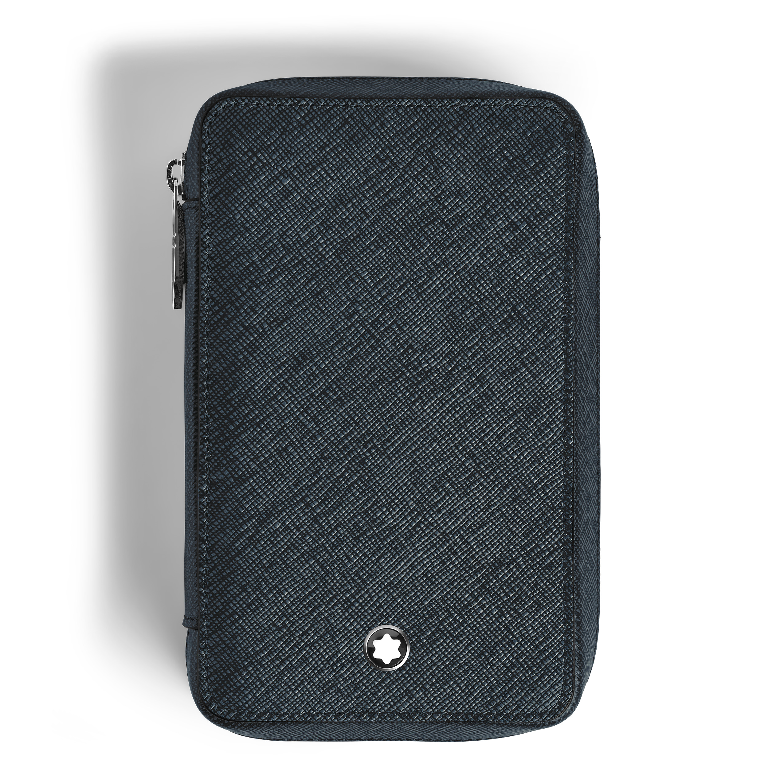 Crafted from two-tone embossed sartorial leather in blue and black, this pen pouch is designed to hold up to eight Meisterstuck Classique or LeGrand writing instruments, keeping them organised and secure. Featuring a distinctive metal zip puller shaped like a nib, it pays homage to Montblanc’s rich writing heritage. Perfect for professionals and writing enthusiasts, it combines refined craftsmanship with practical functionality. Ident No. MB220375 Material Material Leather Physical Weight 350 g Colour Tweed Blue Features Dimensions Width 45 mm Length 100 mm Height 170 mm Physical Weight 350 g