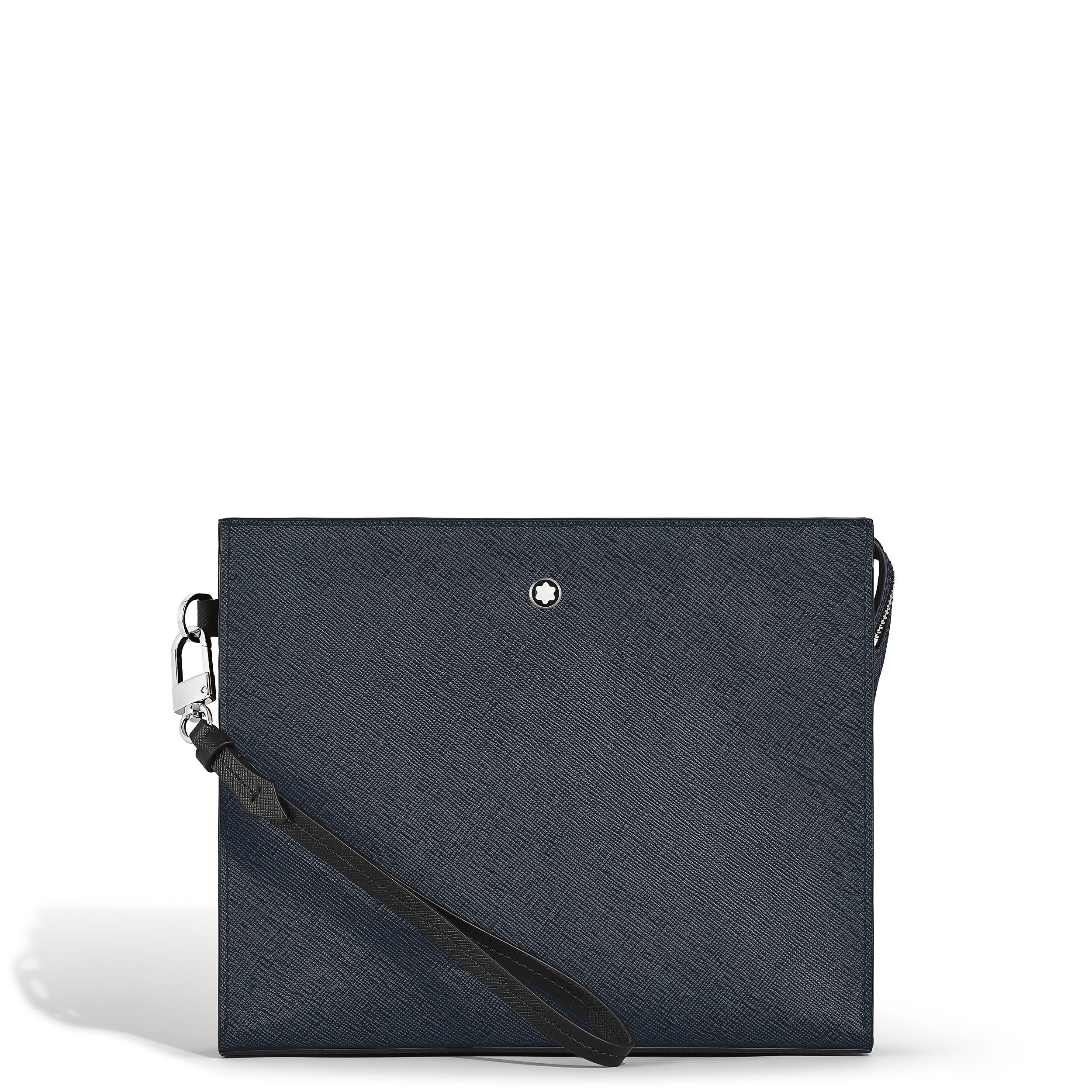 Carry your daily essentials in style with this sophisticated clutch. Crafted from embossed Sartorial leather in a refined two-tone combination of classy blue and black, it features a spacious main compartment with an additional open pocket for convenience. Versatile and elegant, it can be held by hand, tucked under the arm, or worn around the wrist with its detachable handle. Ident No. MB220428 Material Material Leather Leather Saffiano printed full-grain bovine leather Colour Tweed Blue Lining Cotton and polyamide lining Closing System Metal zipper Dimensions Width 45 mm Length 240 mm Height 200 mm Physical Weight 300 g