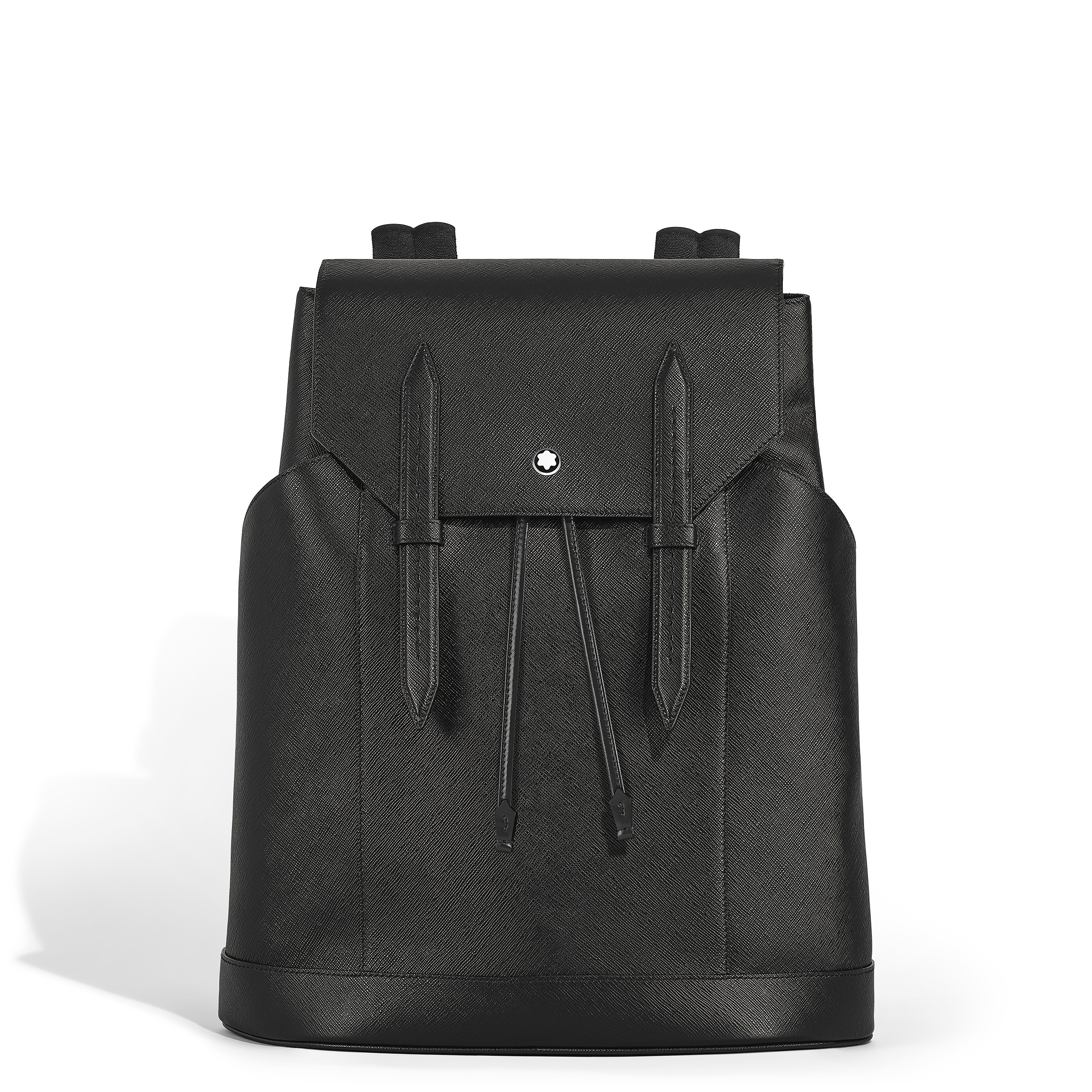 This medium-sized backpack, crafted from Sartorial embossed calfskin leather, combines versatility with modern sophistication. Its refined design features elegant double front straps for added security and a polished aesthetic, making it equally suited for formal and casual settings. The interior includes a padded compartment for a laptop measuring up to 13" , as well as a zipped pocket to safely store your belongings, plus two open pockets for quick access and two loops for writing instruments. Ident No. MB220421 Material Material Leather Leather Saffiano printed full-grain bovine leather Colour Black Lining Cotton and polyamide lining Closing System Flap with magnetic closure and drawstring Dimensions Width 150 mm Length 350 mm Height 430 mm Physical Weight 1600 g