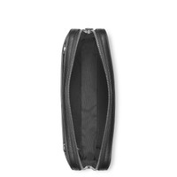 Inspired by the world of writing, this compact bag can be carried by hand or over the shoulder using its adjustable, detachable strap. For added functionality, attach the accessory to larger bags using the leather band on the back. Ident No. MB130308 Material MATERIAL Calf-skin leather LEATHER Saffiano printed full-grain bovine leather COLOR Black LINING Cotton and polyamide lining CLOSURE Zipper Dimensions DIMENSIONS 9.45 × 1.57 × 6.69 inches FITTINGS / EMBLEM Emblems are manually centered, one by one, by our artisans. The emblem is centrally positioned, but the manual pressure operation with the machine may shift the emblem itself. This is a characteristic that does not compromise the aesthetic of the product and could not be accepted as complaint according to our policy.