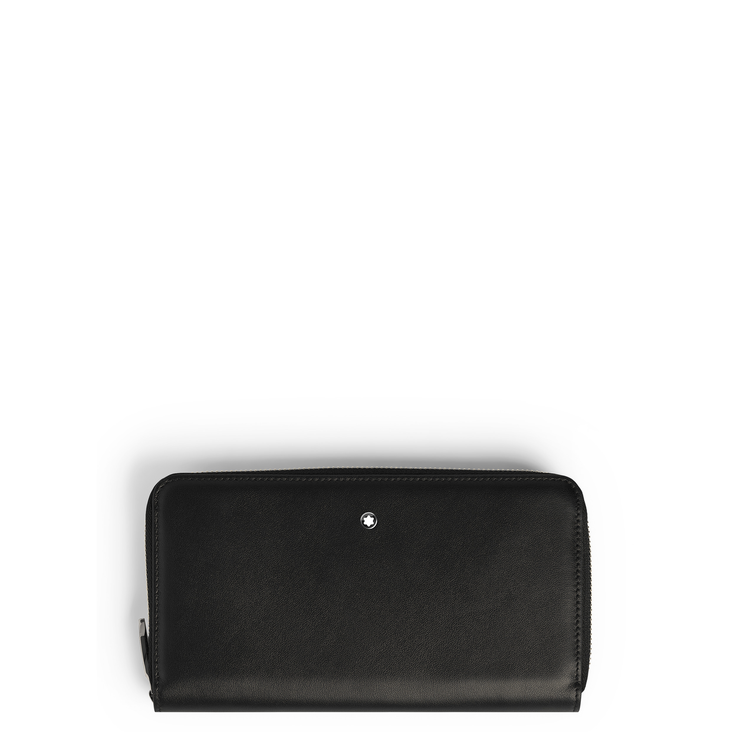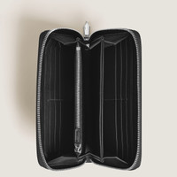 Blending elegant design with practical functionality, this wallet is a versatile companion for any occasion. Crafted from black premium soft calfskin leather, its clean-lined rectangular silhouette exudes sophistication. A nib-inspired puller unzips it to reveal three compartments for banknotes, a zipped coin case, three pockets for smaller essentials, and slots to hold up to 12 credit cards, ensuring effortless organisation with refined style. Ident No. MB220330 Material Material Leather Physical Weight 200 g Colour Black Features Dimensions Width 20 mm Length 175 mm Height 85 mm Physical Weight 200 g