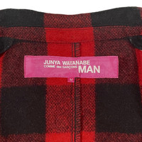 Junya Watanabe Comme Des Garçons PINK wool blend jacket with a buffalo flannel print. Zipper closure with buttoned placket. 2 slant front pockets with 2 button chest pockets. Heavyweight fabric that resembles a felt. Structured shoulders. Made in Japan. Tagged a size medium, fits a US small with short sleeves. Vintage, in good condition. 14.5” shoulder 16” chest 18” hem 22.5” sleeve 23.5” length