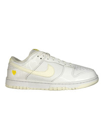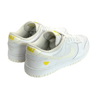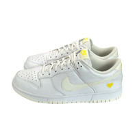 Nike Valentine’s Day 2023 Dunk Low in white. Combination patent leather and tumbled leather upper. Yellow heart at heel with yellow branding on tongue and heel tab. Style code FD0803-100 Great condition. Worn a few times times as evident on soles, but otherwise in excellent condition. Includes box. Size 10W/8.5M