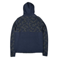 Lululemon hoodie in navy blue with muted camo print along back and sleeves. Made of an ultra soft stretchy cotton. Contrast stitched kangaroo pocket. Thumb holes on sleeves. Logo patch at hem. Fair condition. Holes at shoulder, sleeve, and front pocket. Tags have been removed. Size not indicated, fits like a large-XL. 19” shoulder 21” chest 22” hem 28” sleeve 29” length