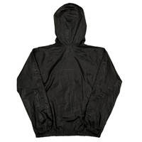 Undercover by Jun Takahashi FW99-00 anorak jacket in black. Quarter zip closure with drawstring hood. Velcro kangaroo pocket on chest. Shadow print across back. Elastic cuffs and hem. Made in Japan. Excellent condition. Pin hole on chest underneath pocket, but barely noticeable. Tagged a size M, fits boxy. 26” length 24” chest 31” from shoulder to sleeve