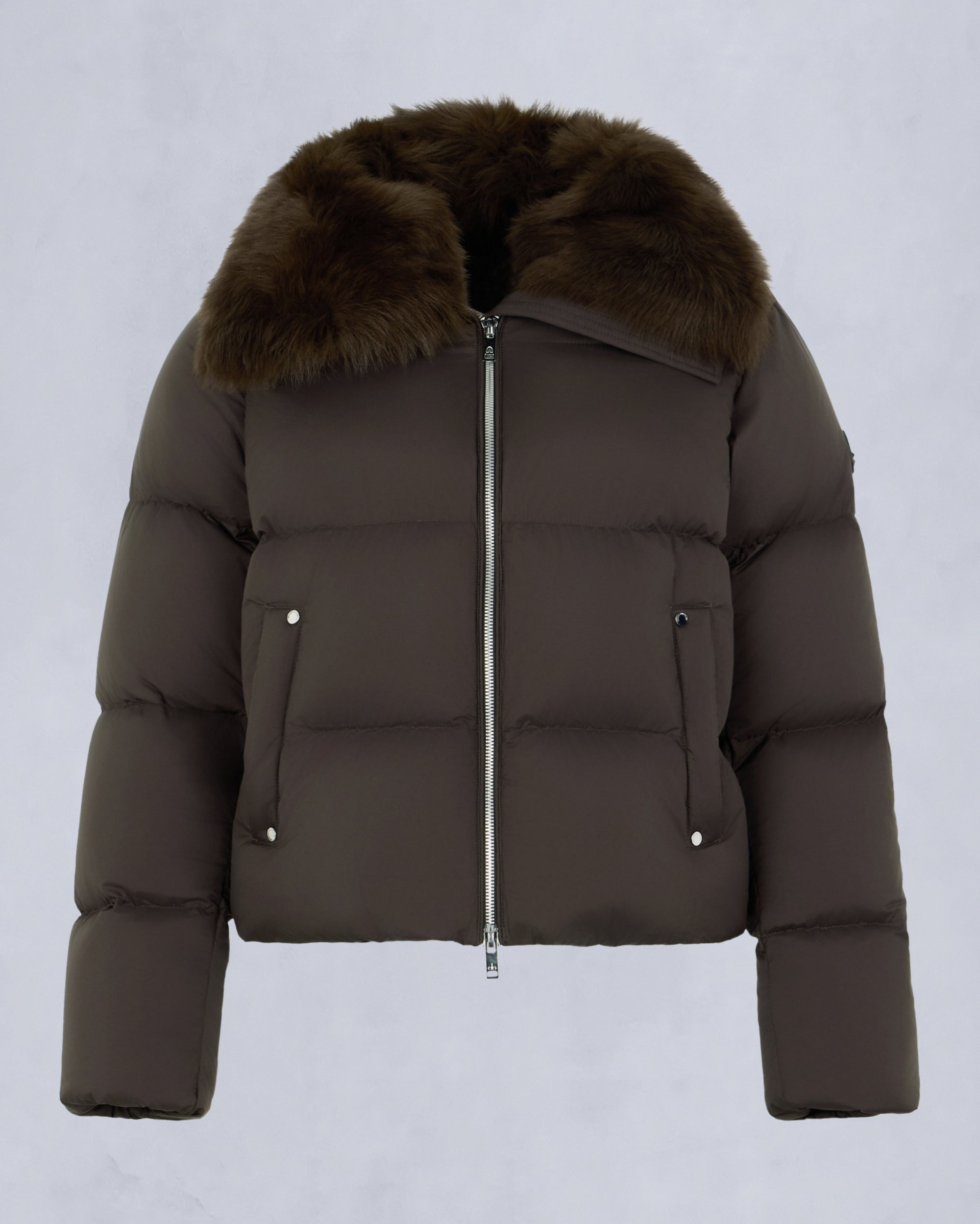 BELLE DUNE SHORT SHEARLING TRIM PUFFER