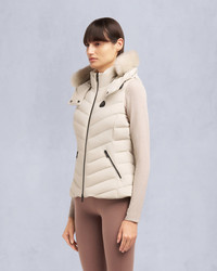 Sporty meets chic with the down-filled, water-repellent, wind-resistant Elora Vest. With a stretchy fabrication, it's designed for active adventures and city days alike. Wear it solo with a sweater or crewneck or layer under a jacket when the weather turns colder. Size & Fit - Slim Fit : Our signature silhouette, cut close to the body throughout the chest, waist, hip, and thigh. Since it fits slimmer than standard, we recommend sizing up from your usual size if you prefer extra room. - 24.5"-62cm Center Back Length. Measurement is done based on a Small. Product Features Warmth & Protection - Protection Rating - Level 1: Chilly – Ultra-light and minimal. Wear these garments to take the chill off breezy nights or as layering option when things get colder than expected. - Genuine Sheep Shearling - Engineered in Canada, RDS-Certified, Water Repellent, Wind resistant Design & Function - Removable Hood with Removable Shearling Trim - Down Filled Collar - 2-Way Zipper - 2 Zip Pockets - Silicone Logo Patch SKU: 822185902906 Materials & Care Fill Responsible Down Standard Certified 90% Duck Down, 10% Feathers Composition - Body: 82% Nylon, 18% Elastane - Lining: 82% Nylon, 18% Elastane Care Remove Detachable Trims Before Cleaning The Garment. Dry Clean Inside Out - Mild Process. Ironing Maximum Temperature 110°C - Without Steam. Country of Origin Made in China