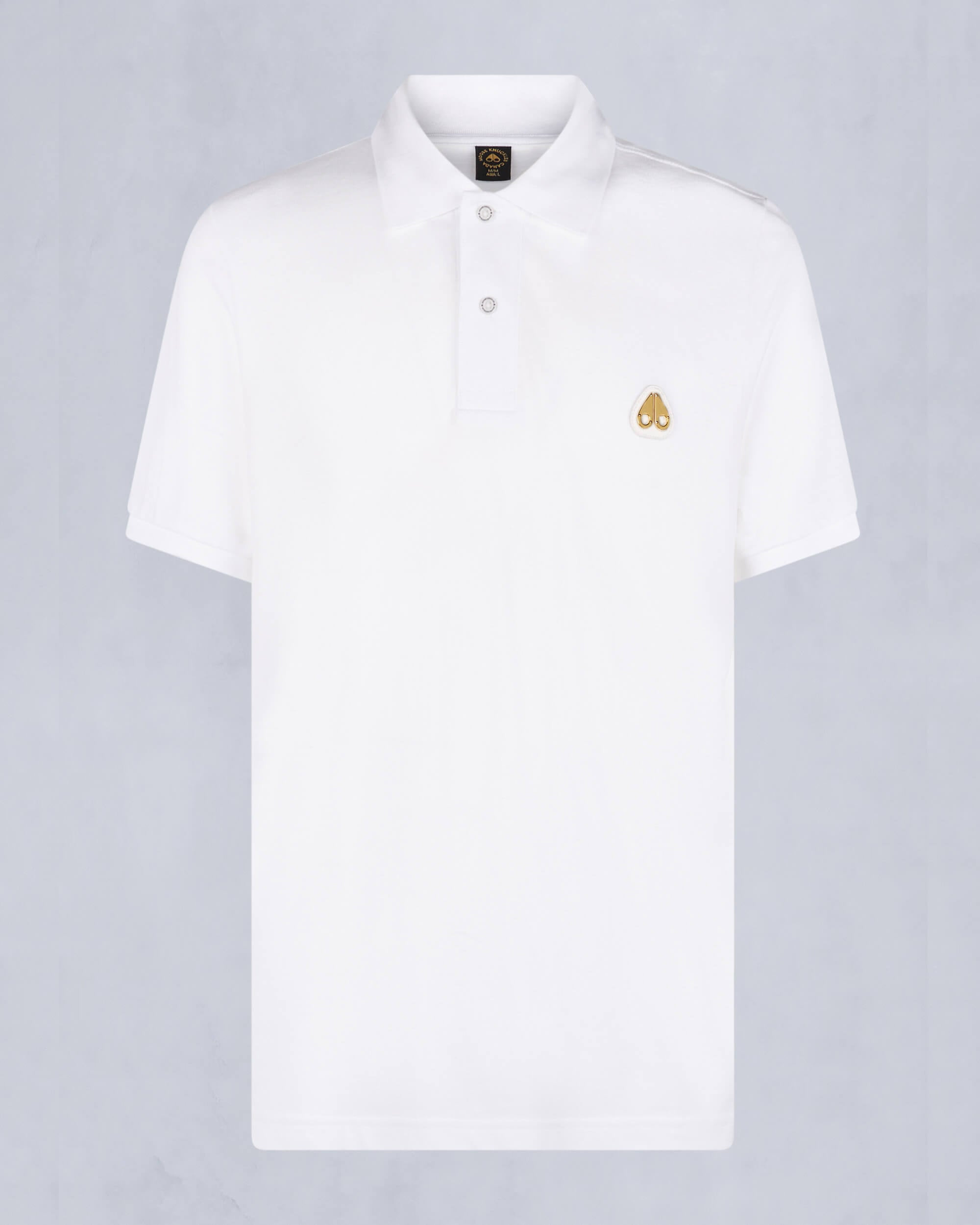 Our Cotton Polo features a striking gold Moose Knuckles logo at the front, adding a touch of luxury to your casual ensemble. Size & Fit - Regular Fit : Regular is an understated silhouette, cut with room for movement throughout the chest and arms. It offers added agility without sacrificing structure and it comfortably accommodates midweight layers. - Model is 6'2' wearing size M - 27" (68cm) Back Length. Measurement is done based on a Medium. Product Features Design & Function - Ribbed Knit Collar - Button Closure on Front - Triangle Patch with Gold Logo SKU: 822185671499 Materials & Care Composition - Body: 100% Cotton Care Machine wash cold water inside out. Wash dark colors separately. Do not bleach. Line dry. Ironing maximum temperature 110°c. Dry clean inside out - mild process. Country of Origin Made in Peru