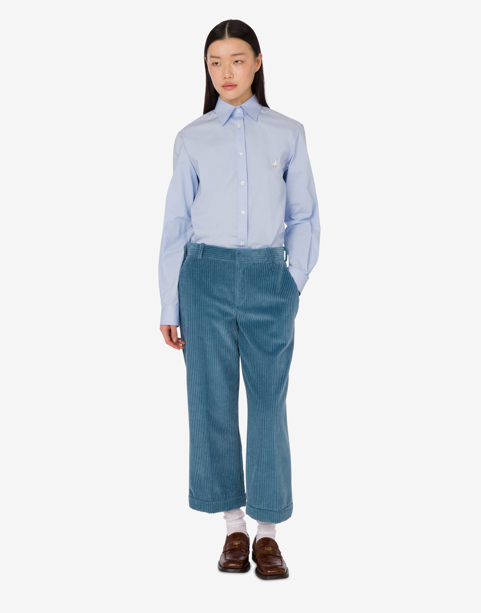 THE FALL/WINTER 2025 PRE-COLLECTION FEATURES THE CROP PANT IN CORDUROY COTTON VELVET WITH LEATHER LOGO DETAIL APPLIED TO THE BACK POCKET. PRODUCT DETAILS CROPPED FIT - REGULAR WAIST - CENTRAL PLEATS - TWO SIDE POCKETS - BELT LOOPS AT WAIST - BACK POCKET - FRONT CLOSURE WITH COVERED ZIPPER AND HOOK - SEWN LAPELS AT BOTTOM FABRIC: 100% COTTON SKU: AEF252E A032055190307 FITTING & DIMENSIONS - MODEL HEIGHT: 177 CM - MODEL BUST: 81 CM - MODEL WAIST: 63 CM - MODEL HIPS: 92 CM - MODEL SIZE: 40