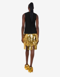 THE RESORT 2026 COLLECTION FEATURES THE SHORT STRETCH CREPE DRESS WITH MIRROR-EFFECT GOLD FRINGING. PRODUCT DETAILS REGULAR FIT - NECKLINE - SLEEVELESS - TWO SIDE POCKETS - BACK ZIPPER CLOSURE FABRIC: 88% POLYESTER, 12% ELASTAN SKU: AEF261E J043505242555