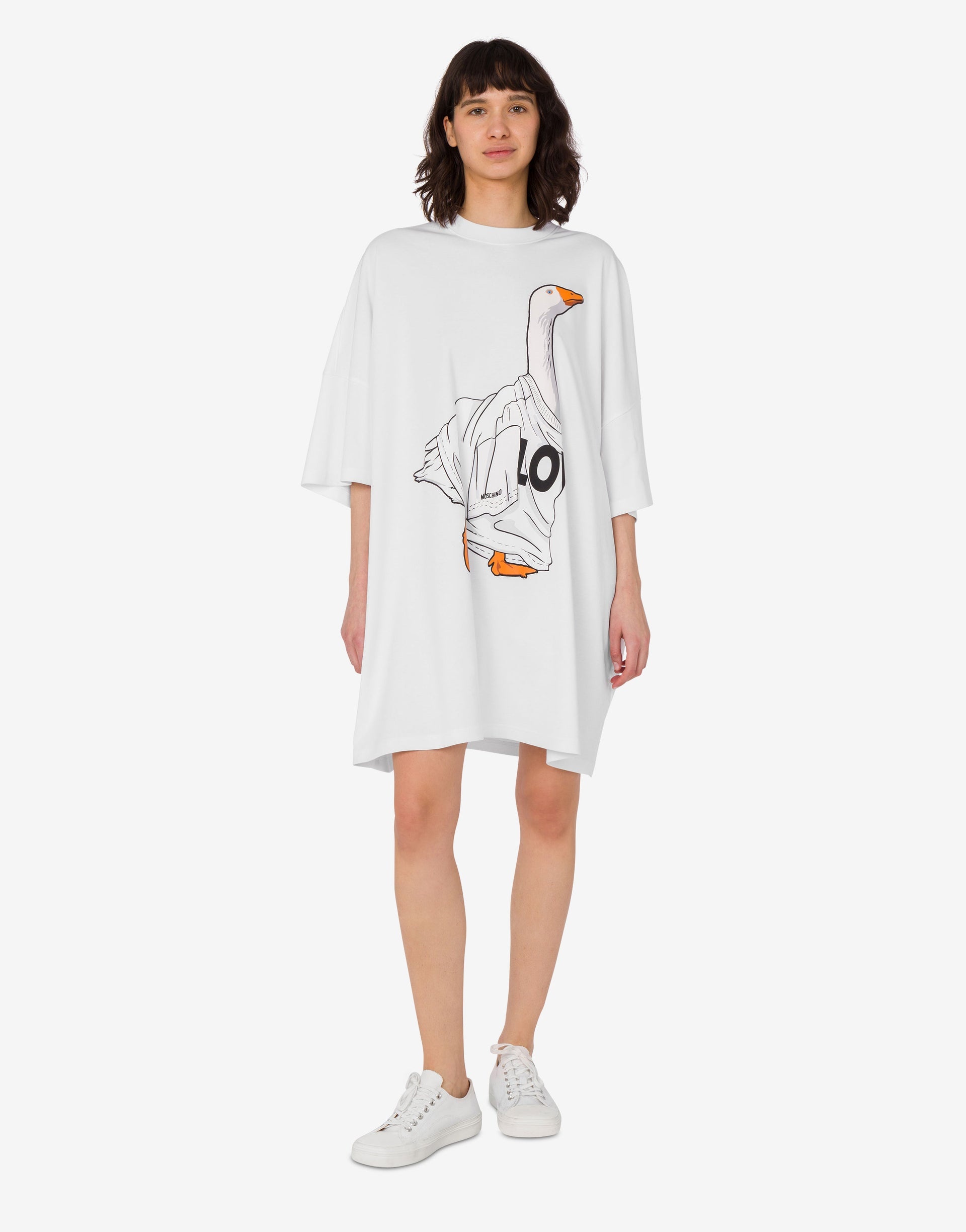 THE FALL/WINTER 2025 PRE-COLLECTION FEATURES THE OVERSIZE FIT HEAVY COTTON DRESS WITH AN ARCHIVAL GOOSE PRINT ON THE FRONT. PRODUCT DETAILS OVERSIZE FIT - LOGO PRINT ON SLEEVE - NECKLINE - DOWN SHOULDERS - THREE-QUARTER SLEEVES FABRIC: 100% COTTON SKU: AEF252E J045155421001 FITTING & DIMENSIONS - MODEL HEIGHT: 177 CM - MODEL BUST: 81 CM - MODEL WAIST: 63 CM - MODEL HIPS: 92 CM - MODEL SIZE: 40