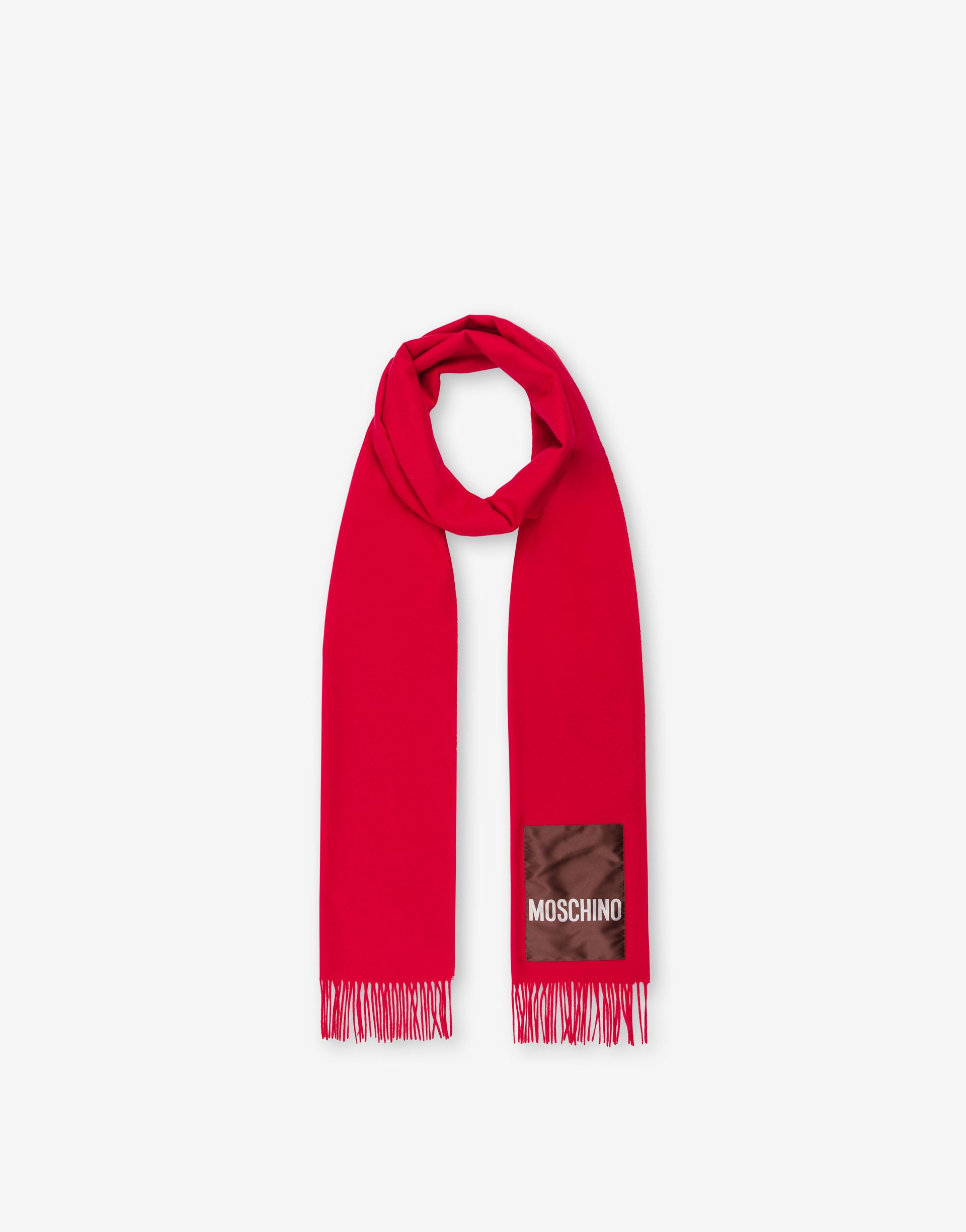 THE FALL/WINTER 2025 COLLECTION FEATURES THE MERINO WOOL SCARF WITH SATIN LOGO PATCH. PRODUCT DETAILS - CONTRAST LOGO PATCH - FRINGED EDGES FABRIC: 100% WOOL SKU: LSEQ050241D0M5866V007