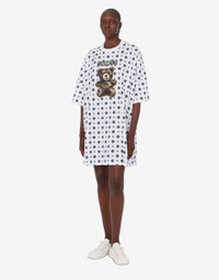 THE RESORT 2026 COLLECTION FEATURES THE ORGANIC COTTON JERSEY DRESS WITH ALL OVER PRINT AND MOSCHINO TEDDY BEAR ON THE FRONT. PRODUCT DETAILS OVERSIZE FIT - CREW NECK - SHORT AND WIDE SLEEVES - SHOULDERS DROPPED FABRIC: 100% COTTON SKU: AEF261E A043905412001