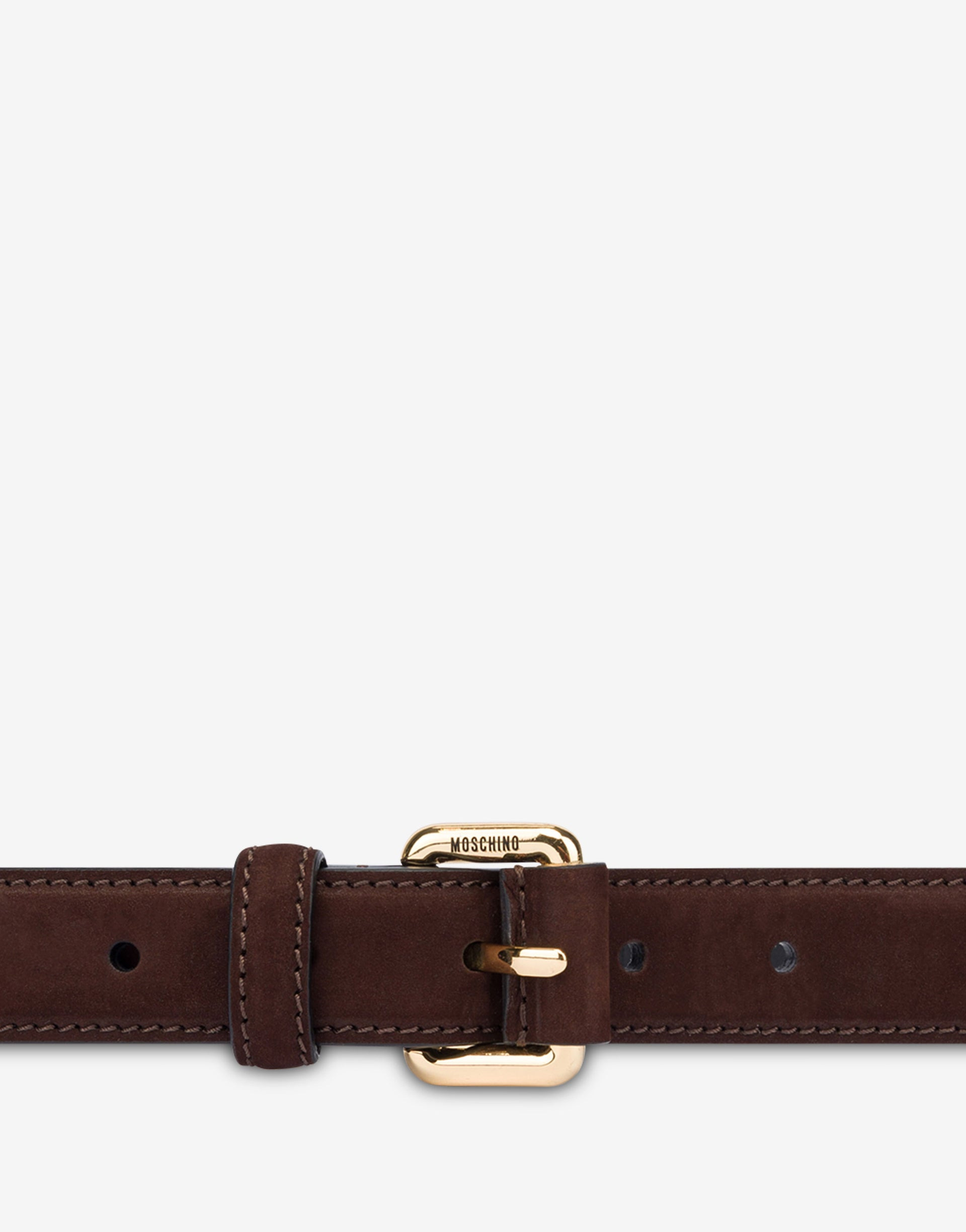 NUBUCK BELT WITH GOLD-PLATED BUCKLE FEATURING A SMALL ENGRAVED LOGO AND A NUBUCK-COVERED ROLLER. ADJUSTABLE BUCKLE CLOSURE LEATHER INTERIOR LINING: 100% CALFSKIN UPPER: 100% CALFSKIN CODE: POLMC6007PP1MOJ0301 FIT HEIGHT: 2.5 CM