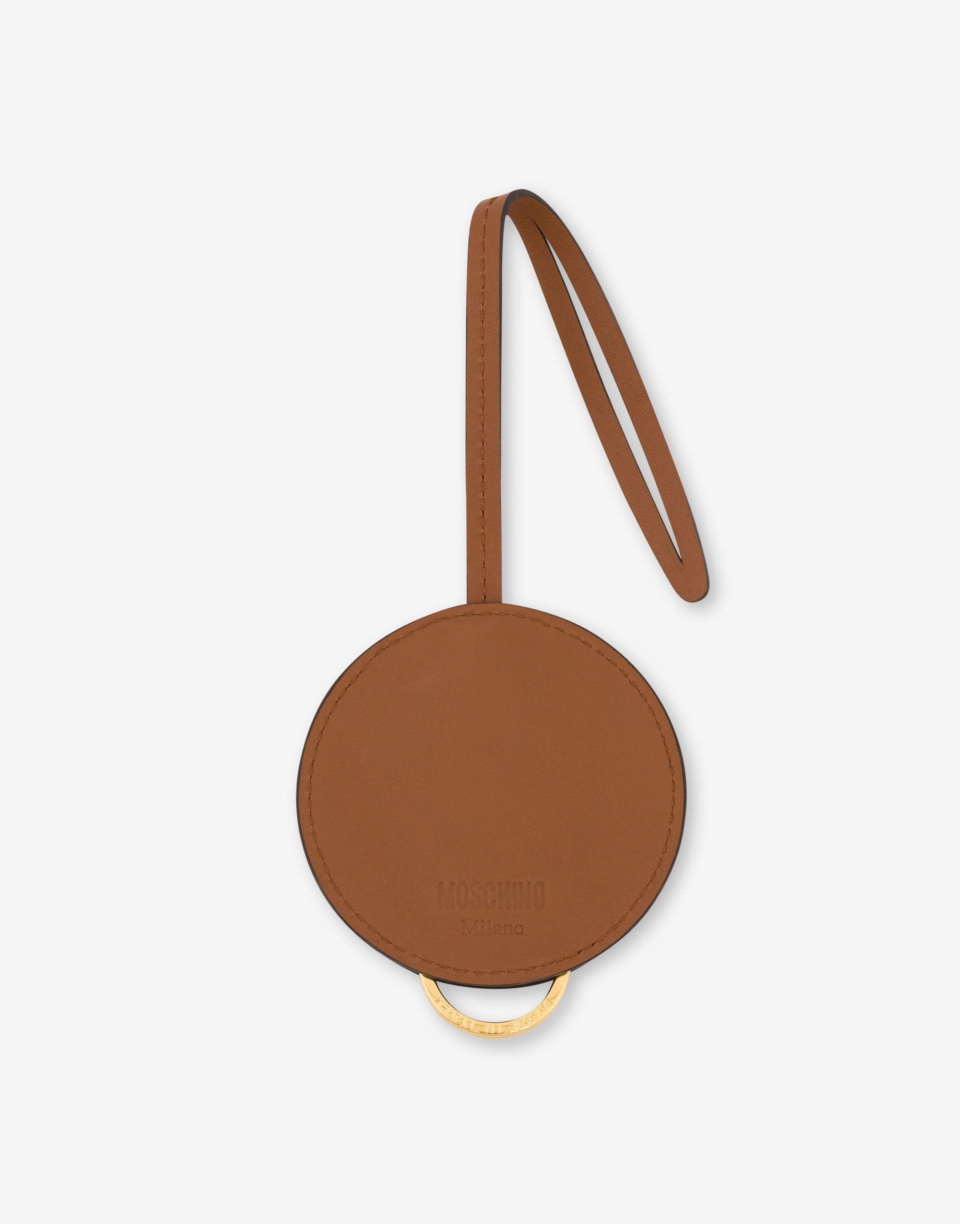 CALFSKIN CHARM WITH MAXI DECORATIVE PIN FEATURING A PIZZA PRINT. THE STRAP IS ADJUSTABLE AND EQUIPPED WITH A METAL BRISE RING. PIZZA PIN APPLIED ON THE FRONT LOGO PRINT ON THE BACK UPPER: 100% CALFSKIN CODE: POLMC5417PP0MOM420A