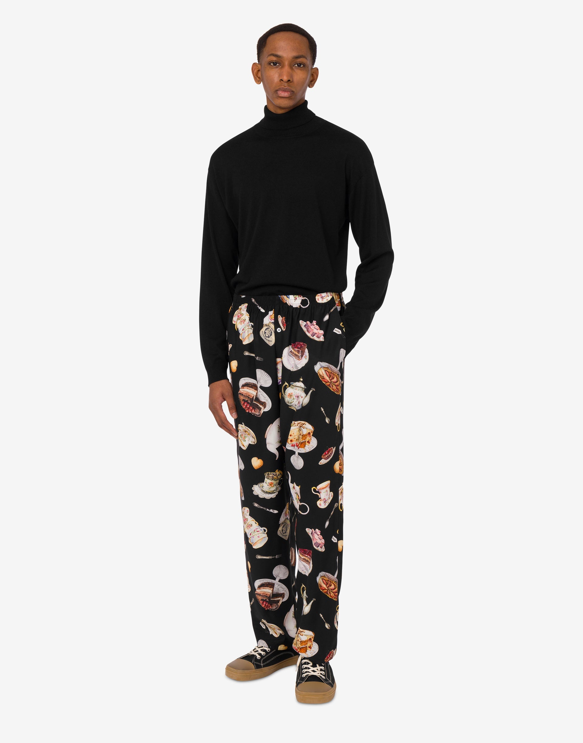 THE FALL/WINTER 2025 COLLECTION FEATURES THE SILK MATTE SATIN TROUSER WITH ALL OVER TEA PRINT. PRODUCT DETAILS RELAXED FIT - TWO SIDE POCKETS - DECORATIVE BUTTON ON THE FRONT - ELASTIC WAIST - BACK POCKET FABRIC: 100% SILK SKU: AEF252ZZA031352591555 FITTING & DIMENSIONS - MODEL HEIGHT: 188 CM - MODEL BUST: 92 CM - MODEL WAIST: 73 CM - MODEL HIPS: 92 CM - MODEL SIZE: 40